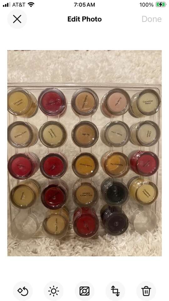 Gold Canyon Candle Fundraiser Sample Scents Set Of 23. Classic fundraiser sample scents in darling little pods with gold foil embossed labels with GC logo/ artwork on lids. In original clamshell case (plastic handles broke off). See photo for included scents. One plastic jar has a white mark at bottom. A wonderful set of highly-scented samples from the best candle company that is, sadly, no longer in business.