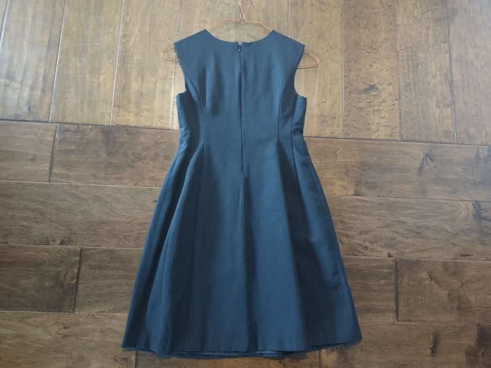 This was worn once and has been cleaned. It's marked a size 6, but I was an 8 when I bought it. It's very cute and flattering.