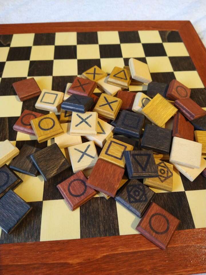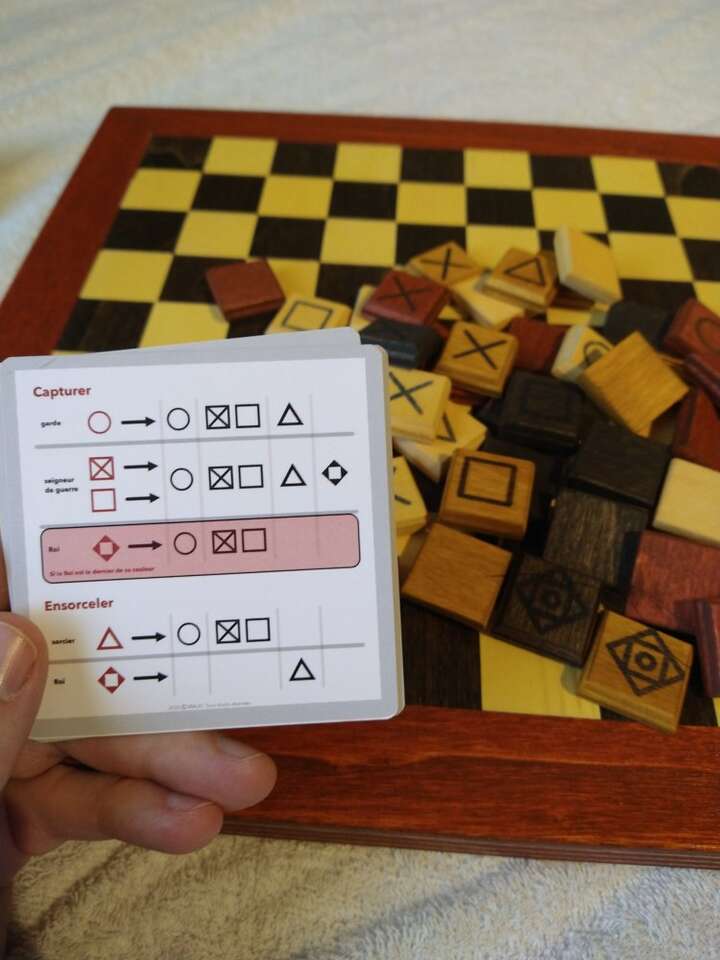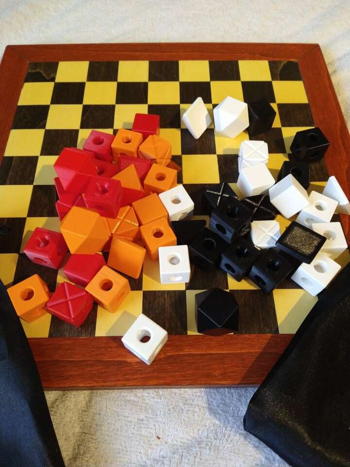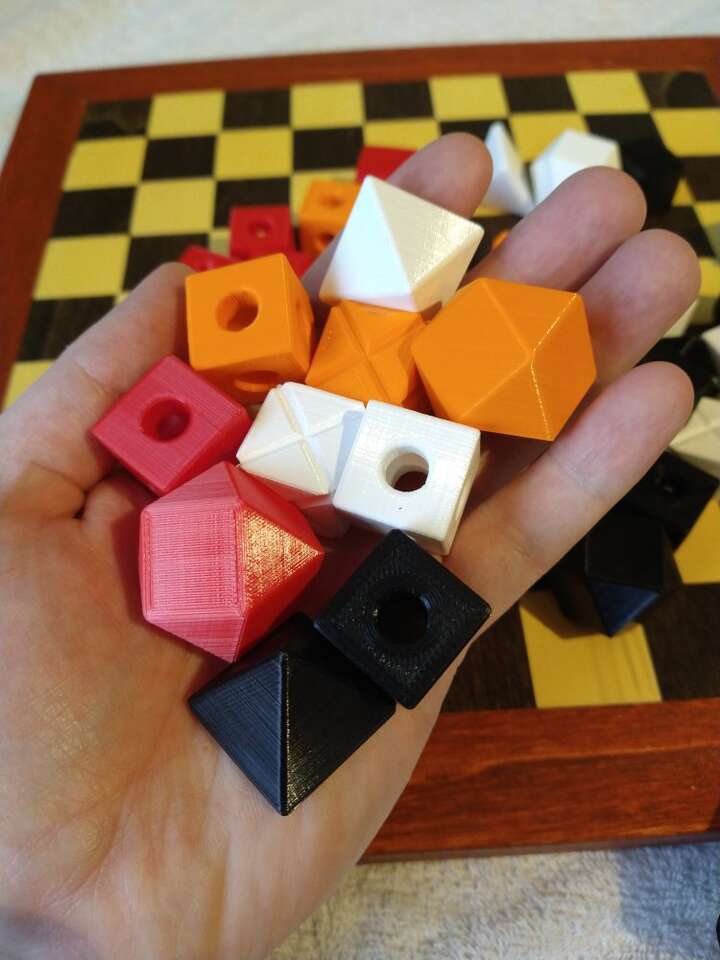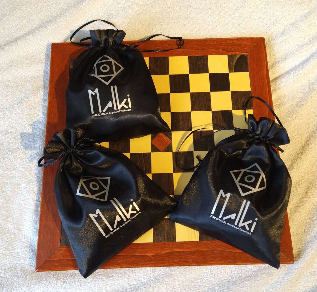 Malki is a game that is kind of a mix between Chess and King of Bunker Hill for 2-4 players. There are different pieces and they move different ways like Chess, but ultimately the winner is the first person to get their king to the middle square on the board. This is a wooden board and it comes with the rules and wooden pieces as well as a full set (4 colors for up to 4 players) of 3D printed pieces.