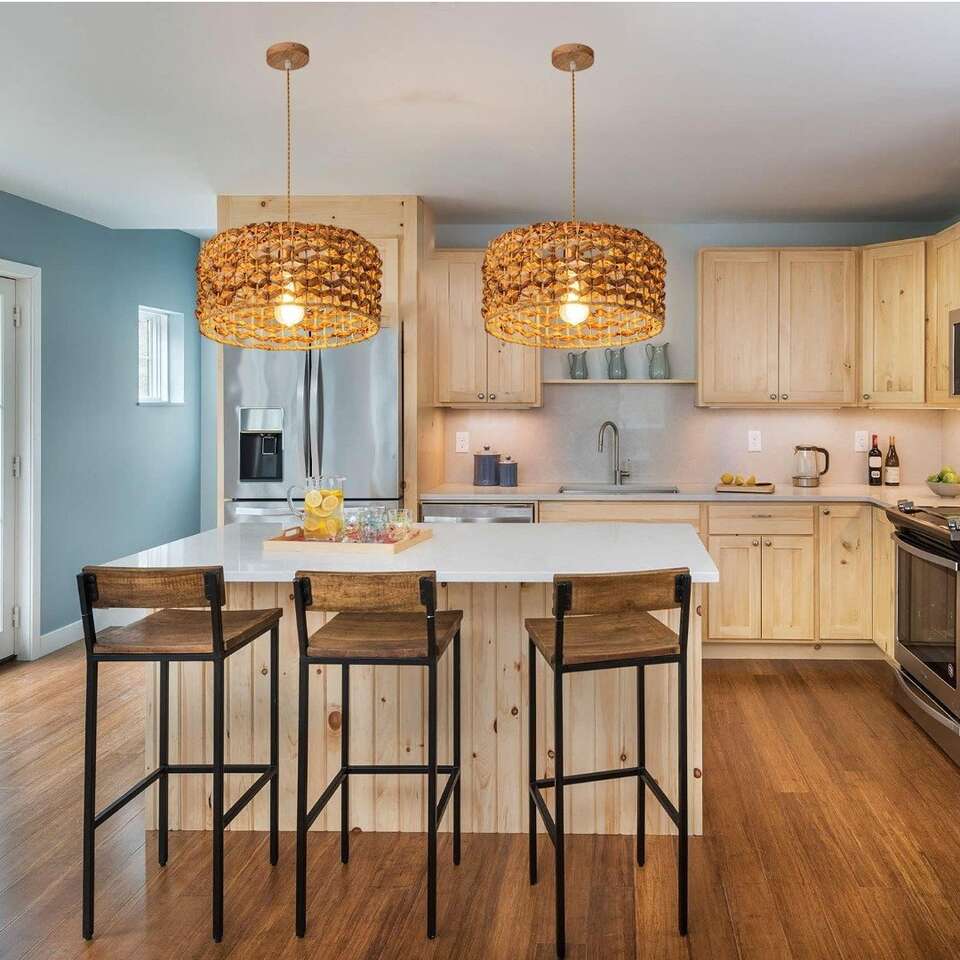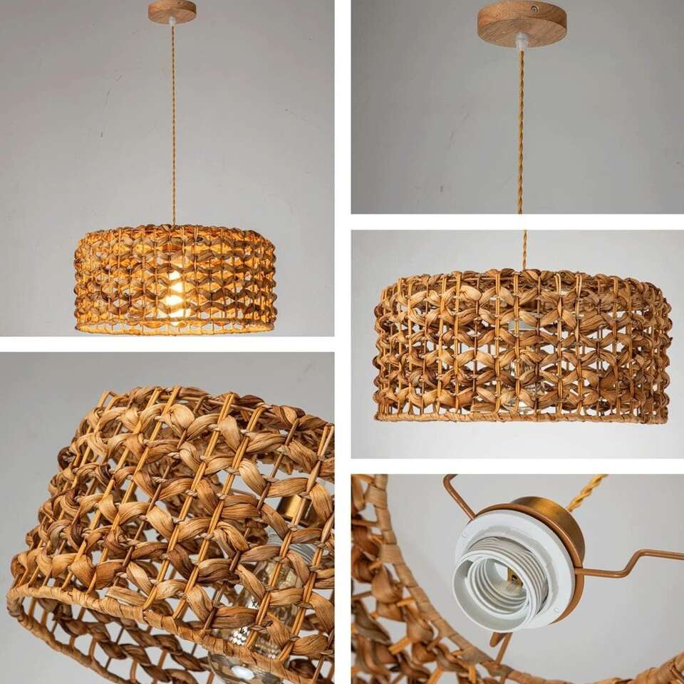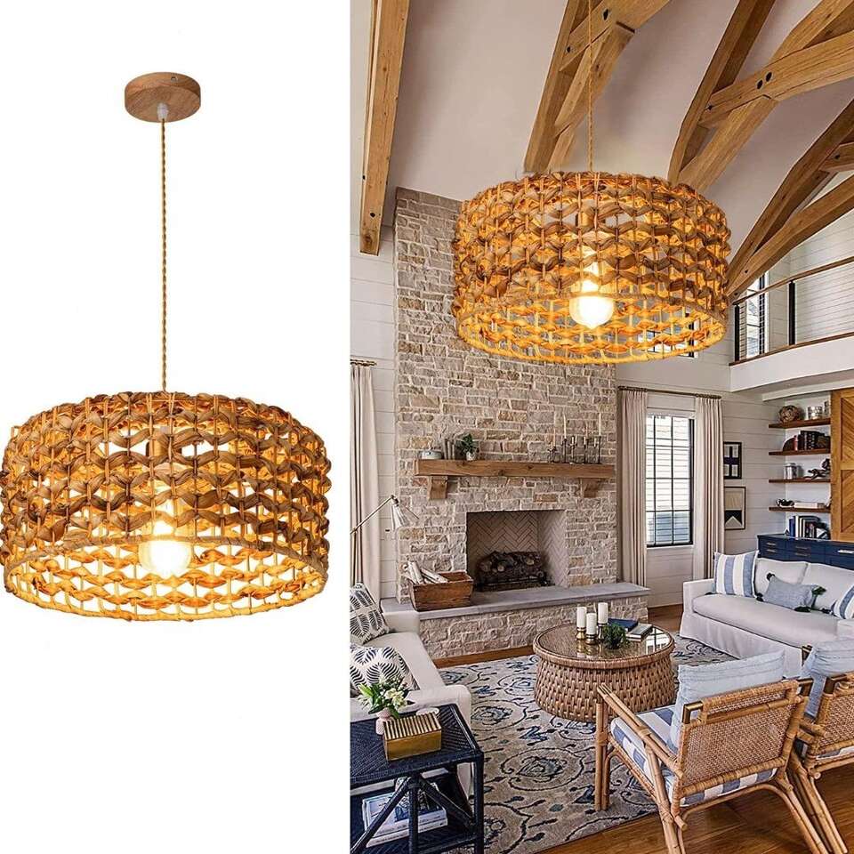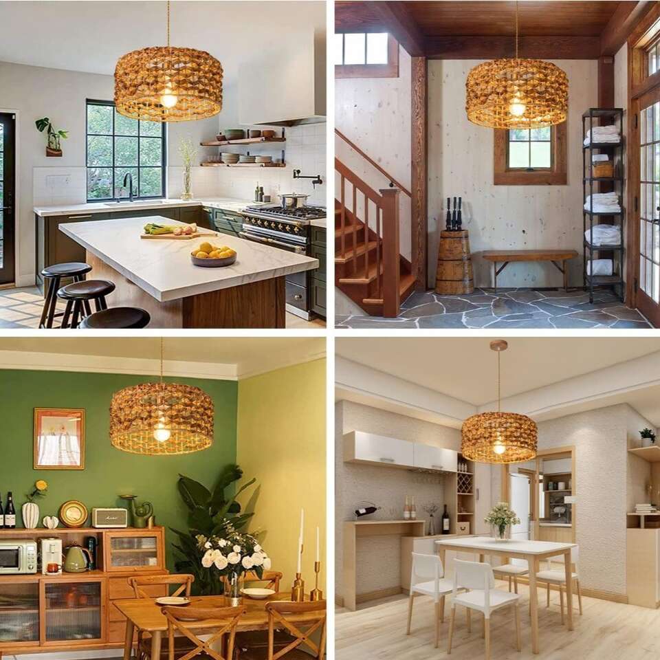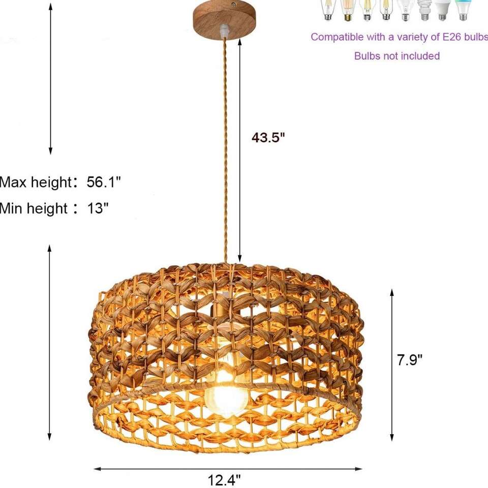 This striking Rattan Chandelier fixture is designed with a hand-woven rattan shade crafted from strong, natural materials that are both safe and sustainable. Creating a beautiful rose-colored ambiance, the light passing through the wicker shade at night casts an elegant, chic pattern on the walls and ceiling. A timeless addition to any home. This Wicker Pendant Light features a 12.4" shade width, 7.5" shade height, and 41.3" wire length, as well as a 4" adjustable ceiling tray. It is made from safe and eco-friendly rattan material, and is compatible with E26 bulbs of up to 60W. Bulbs are not included. Effortless Installation: Installation is simple and easy. All necessary hardware is included and setup takes minutes. Remember to disconnect power before installation. For added safety, we recommend hiring a professional electrician (follow the link to view the installation video). Wide range of applications: This Home Woven Pendant Light combines vintage and simple styles, perfect for decorating dining rooms, living rooms, kitchen islands, bedrooms, foyers, entrances, hallways, staircases, farmhouses, cafes, basements, bars, clubs and libraries. rattan chandeliers With its natural material composition, it can easily match and enhance any home décor. Easily adjustable cord length allows you to customize the lighting of your room. Ensure Quality with Amazon: Natural Material Hand-Woven Hanging Lamp REIUYTHO We strive to provide you with the best quality lighting fixtures, backed by our 24/ customer service and a satisfaction guarantee. If you're not happy with your purchase, we'll work with you to make it right. Buy with confidence knowing you're getting the highest quality.