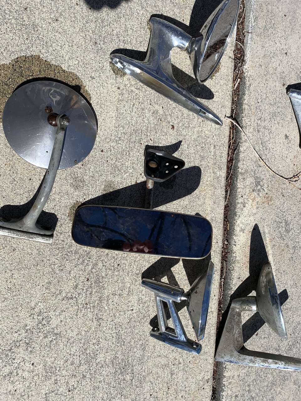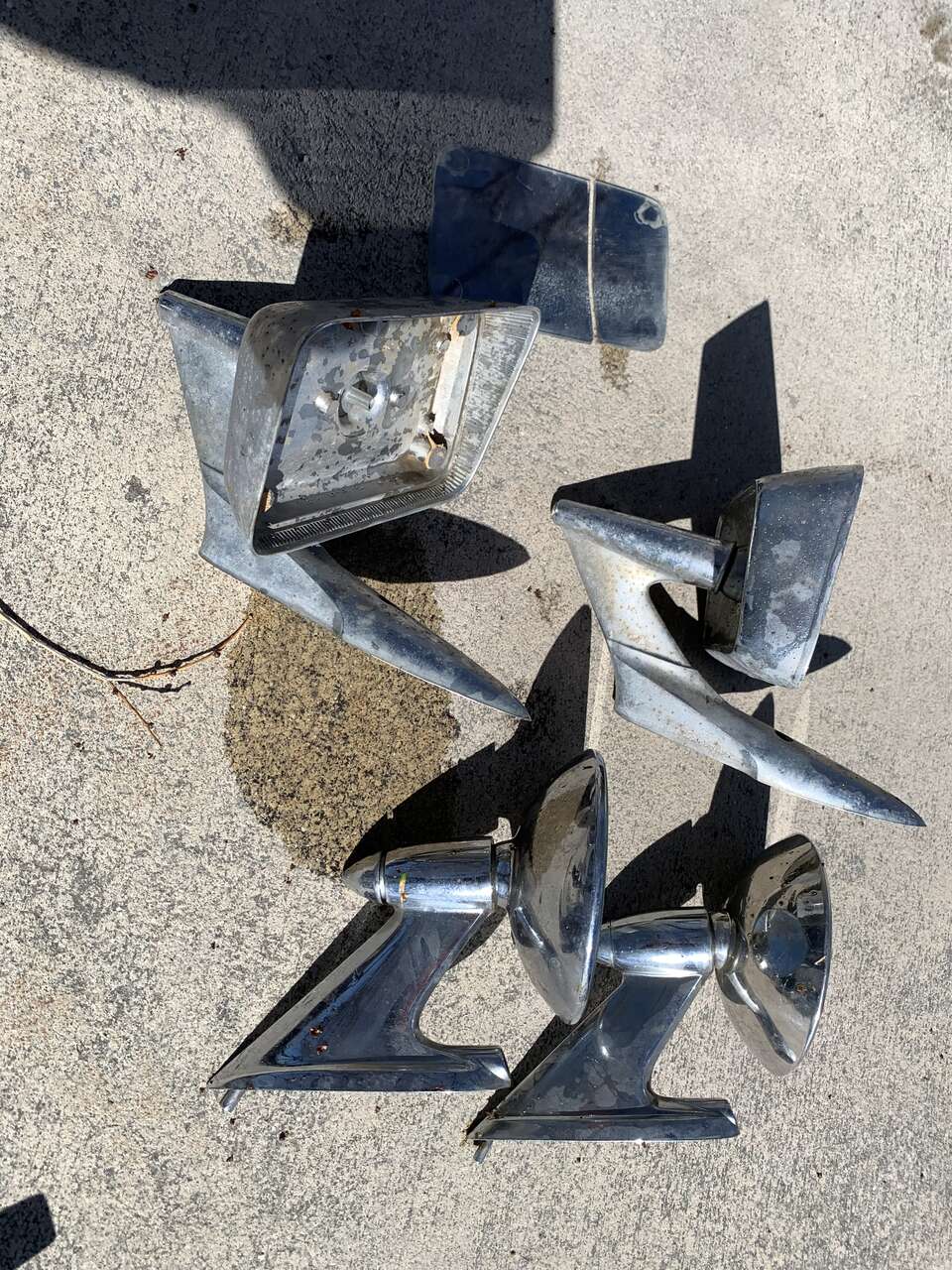 All these used mirrors for 1 money. 2 pairs. They are all dirty, pitted and worn. Triple your money at any swapmeet.