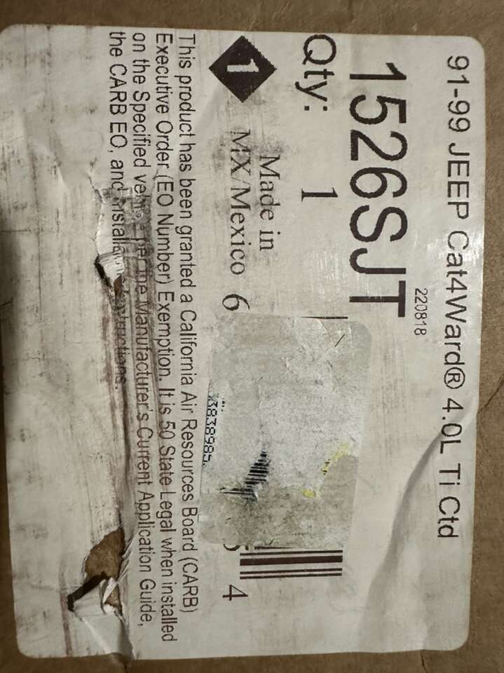 texting works at 801-787-5567 cof brand new in the box direct replacement for factory exhaust manifold header 91-99 Wrangler TJ/YJ 91-99 Cherokee XJ 4.0 L engine 1-1/2 mandrel-bent stainless steel primary tubes Includes hardware, gaskets and instructions Limited lifetime warranty Titanium ceramic coating State Legal: 50 State