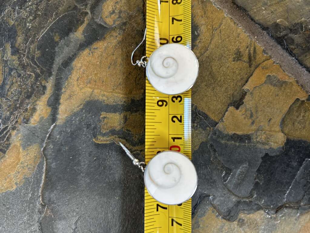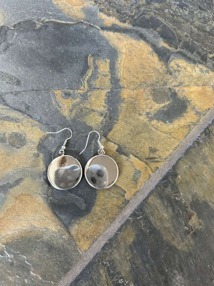 Stainless steel circle white and gray swirl stone earrings. About 1 inch in diameter. Fish hook style. Clean non smoking home. Cash or Venmo. Porch pick up from Alpine.