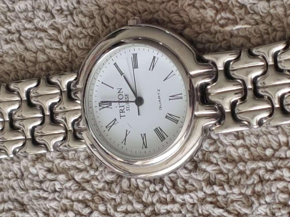 PayPalDiscover the Triton Suisse quartz Ladies watch, a beautiful wristwatch that will complement any outfit. This timepiece features an analog display, making it easy to read the time in any situation. The watch is powered by a quartz movement, ensuring accurate timekeeping for years to come. Designed specifically for women, this watch is perfect for any occasion. Whether you're dressing up for a night out or simply running errands, the Triton Suisse quartz Ladies watch is the perfect accessory. With its sleek design and high-quality craftsmanship, this watch is sure to become a favorite in your collection. 10 obo will ship worldwide.