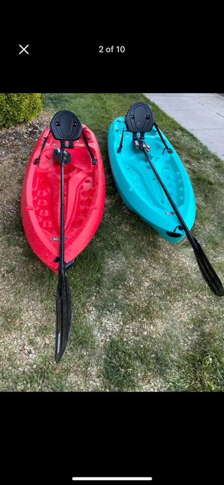 8ft sit up kayaks. 250 lb capacity . They’re located in south salt lake . $100 refundable deposit . Kayak cart available for $10 .