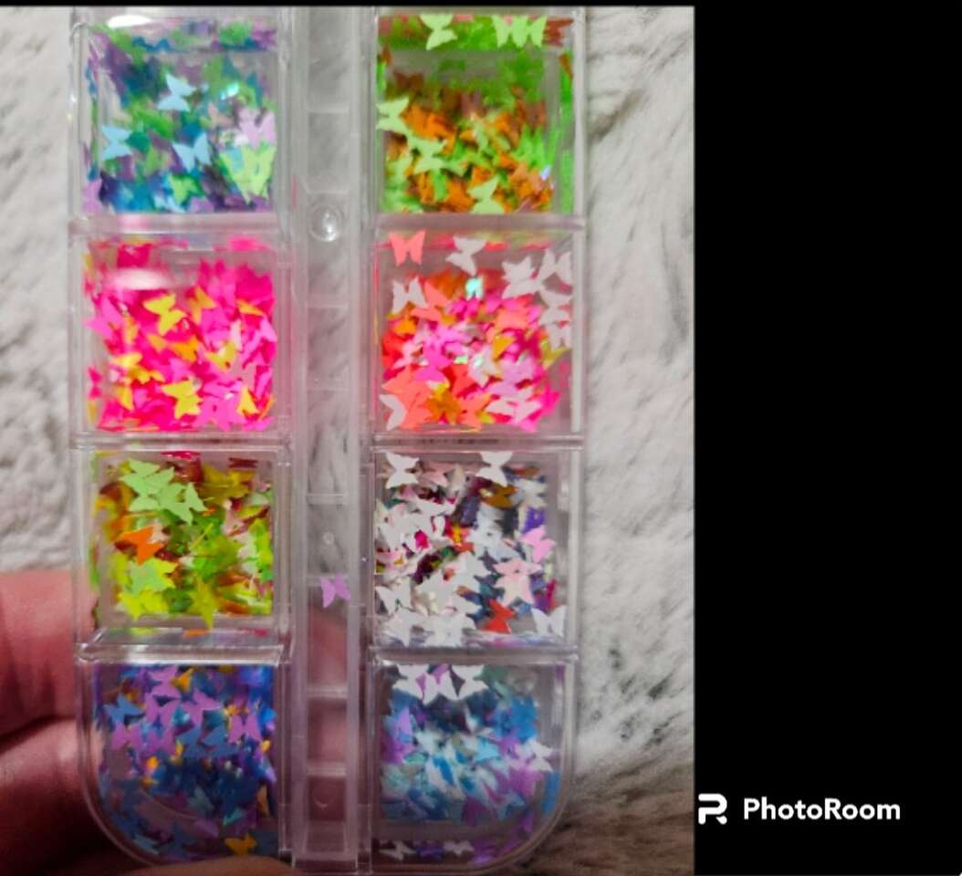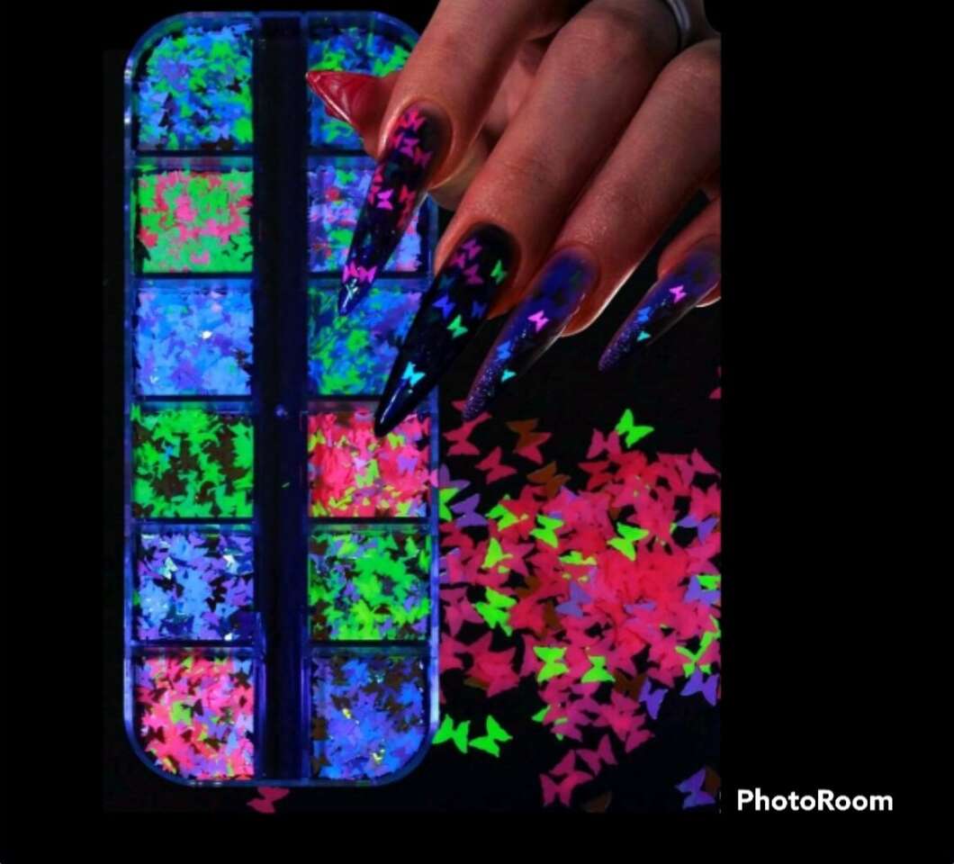 This container of 12 glow in the dark nail sequins are new never opened. All my items come from a smoke free home. Any questions please feel free to contact me.