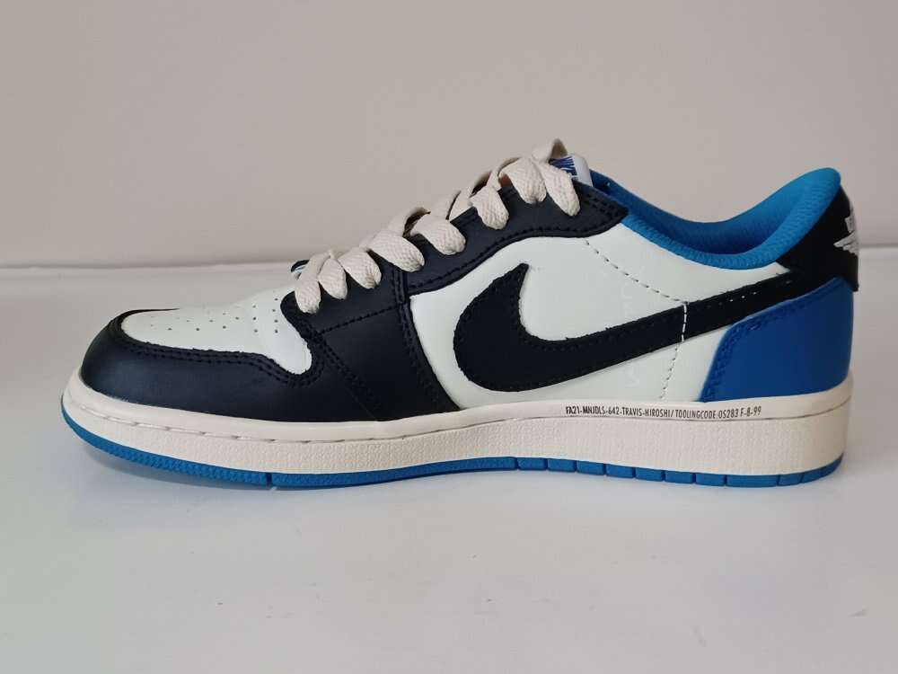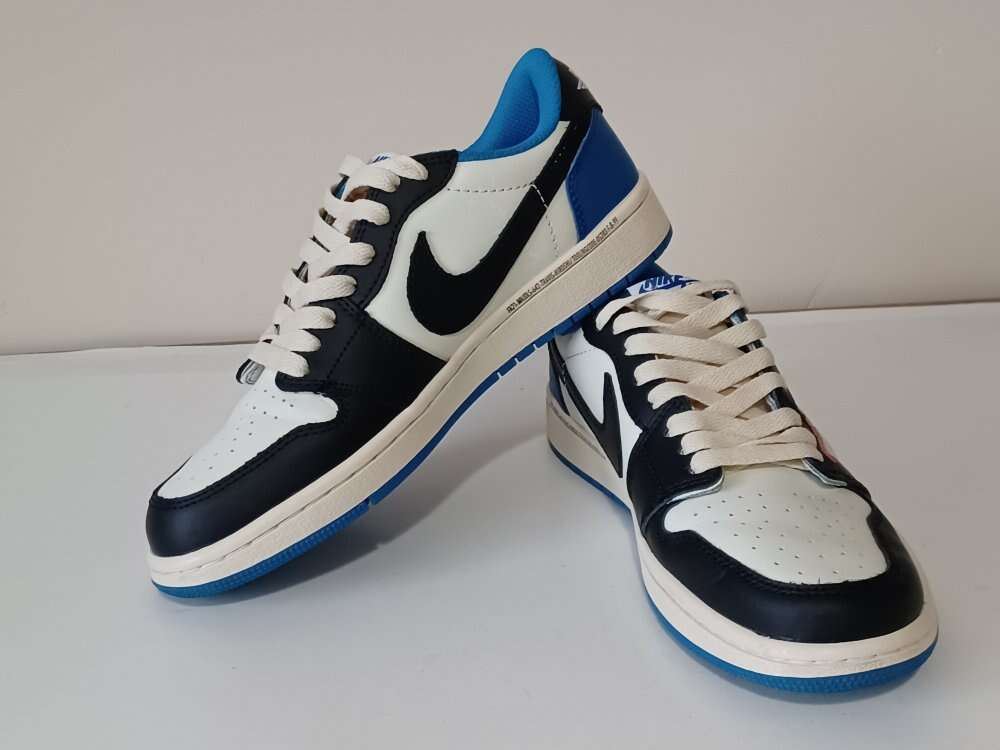 Size 9.5 - Nike Jordan 1 Retro x Fragment Design x Travis Scott Low Blue Used size 9.5 or 10 inches length. Missing the size tag inside.