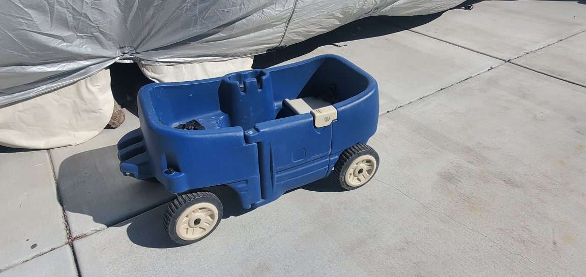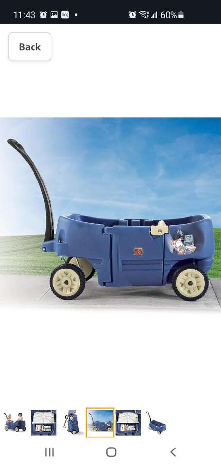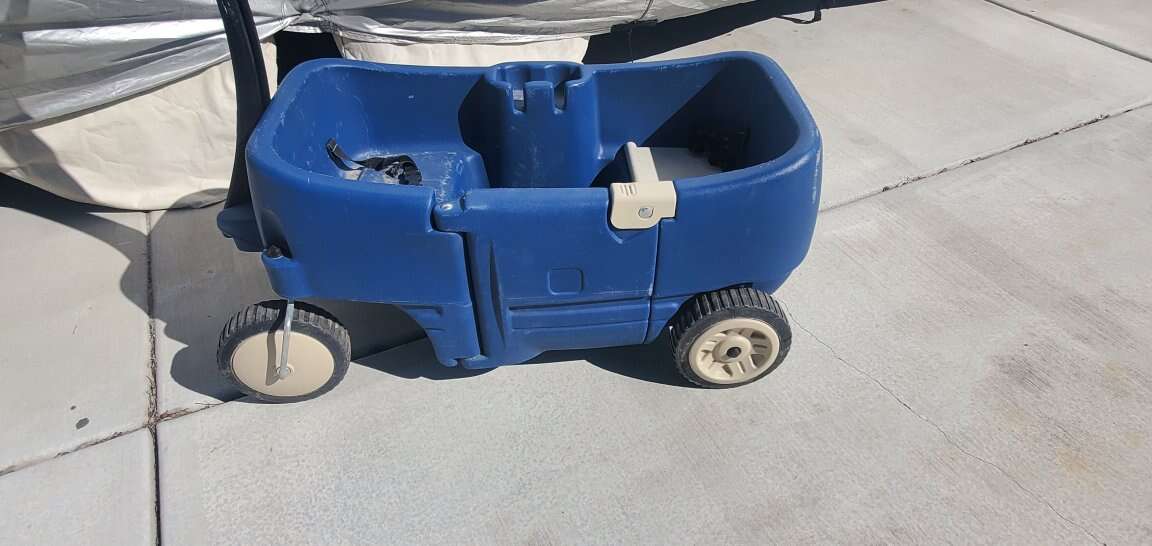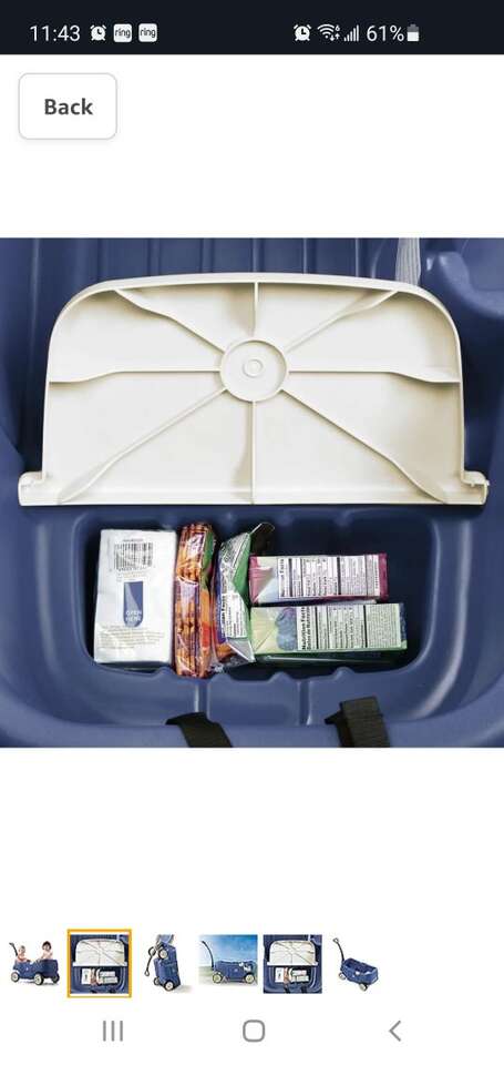 seats 2, has a door, fold up snack compartment under the seat and even cupholders. Handle also folds under for storage