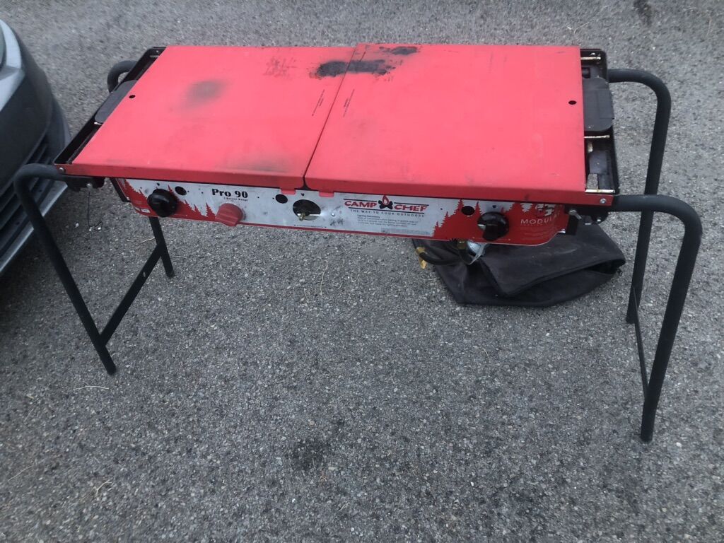 Camp chef stove 2 burner 110$ or best offer Camper jacks 20$ each 2 available Cast iron skillet and other things 25-25$ Camp kitchen sink/table 45$ Camp kids table 19$ Camp cot small 25$ Big cot 29$