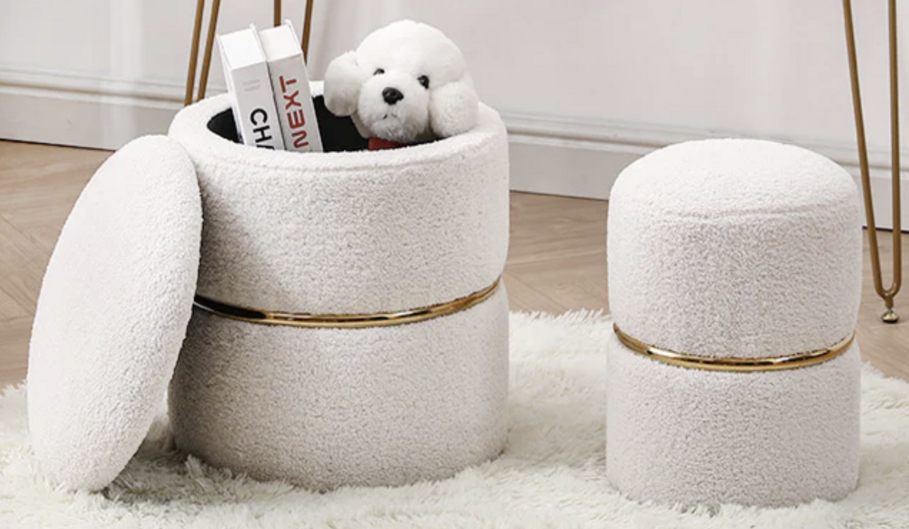 Venmo$50.00 obo (normally $100) This 2-piece ottoman set in faux fur is designed to add a touch of cozy and elegance to your living room or bedroom. Comes in two different sizes, with the smaller one able to nest inside the larger one for space-saving convenience. Functional with lift-off lid that provides moderate storage space for items such as throw blankets, pillows, toys, clothes or shoes; Variety of color options provided ensures the stool will complement any existing decor; No need for assembly! Velvet: Clean with a dry cloth Faux Leather: Spot clean with a wet cloth Faux Sherpa: Spot clean with a dry cloth Linen: Spot clean with cleaner Note: The gray ones are only showing the size, the color is white.