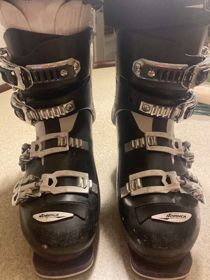 This item is a pair of used Nordica Sportmachine 75wr women’s ski boots, size 24.0 which is similar to a woman’s size 6. These are in very good condition. I can be reached at 845-558-5719, thank you for looking!