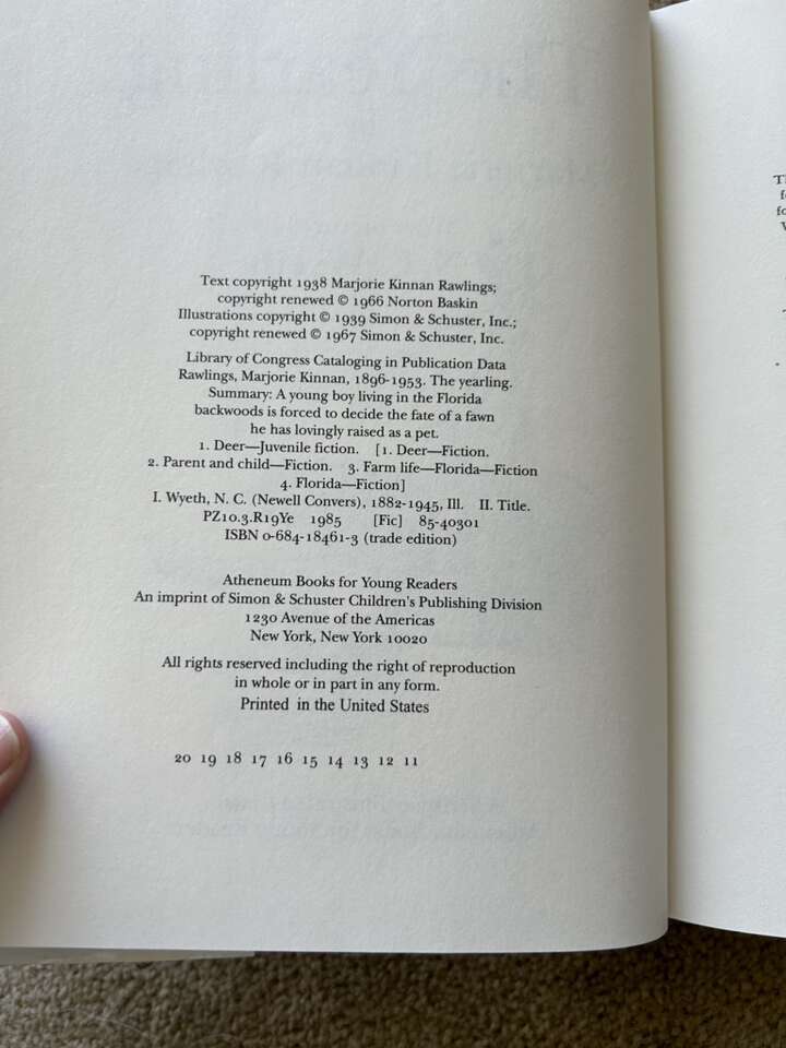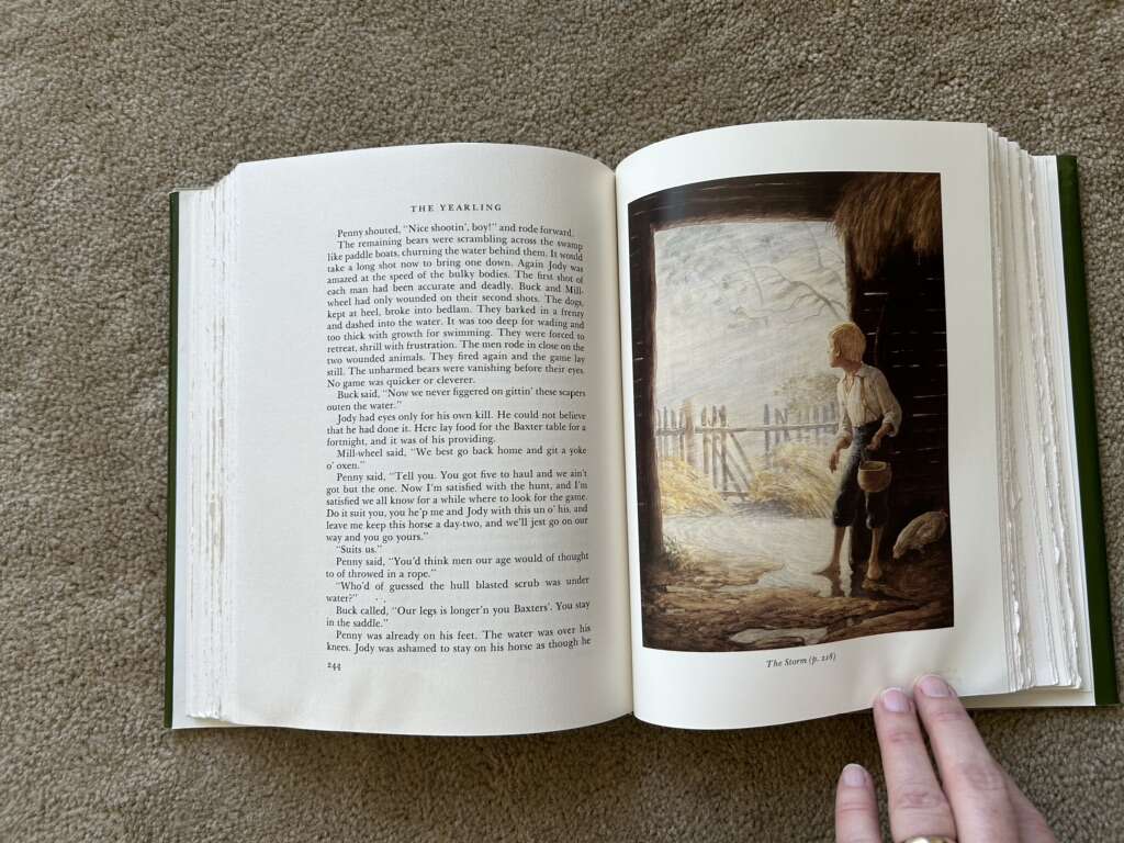 Vintage The Yearling, by Marjorie Kinnan Rawlings, illustrated by N.C. Wyeth. Scribner Illustrated Classic, 1985, 400 pages. Beautiful hardcover edition of the classic children’s story, excellent condition, including dust jacket. Text only. Cash or Venmo.