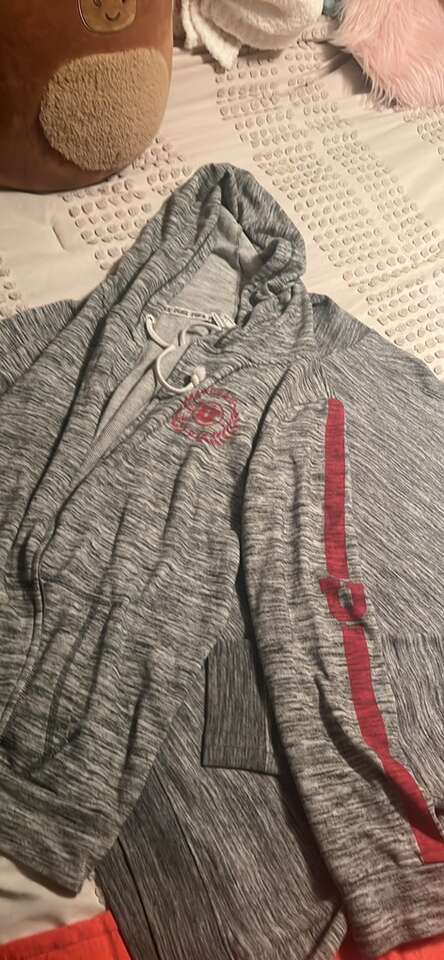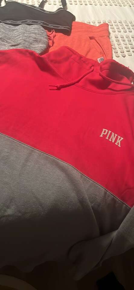 These are all size Lg. All in excellent to good condition. The gray sweatshirt I am pointing to a small spot, not sure if it’s a stain or not. Must take all.