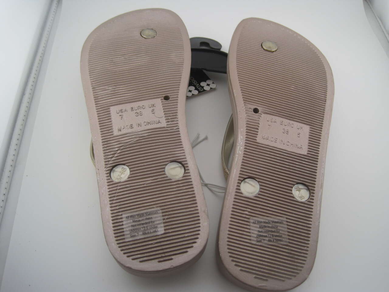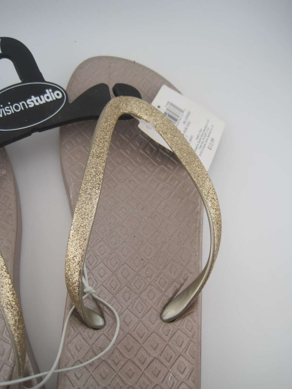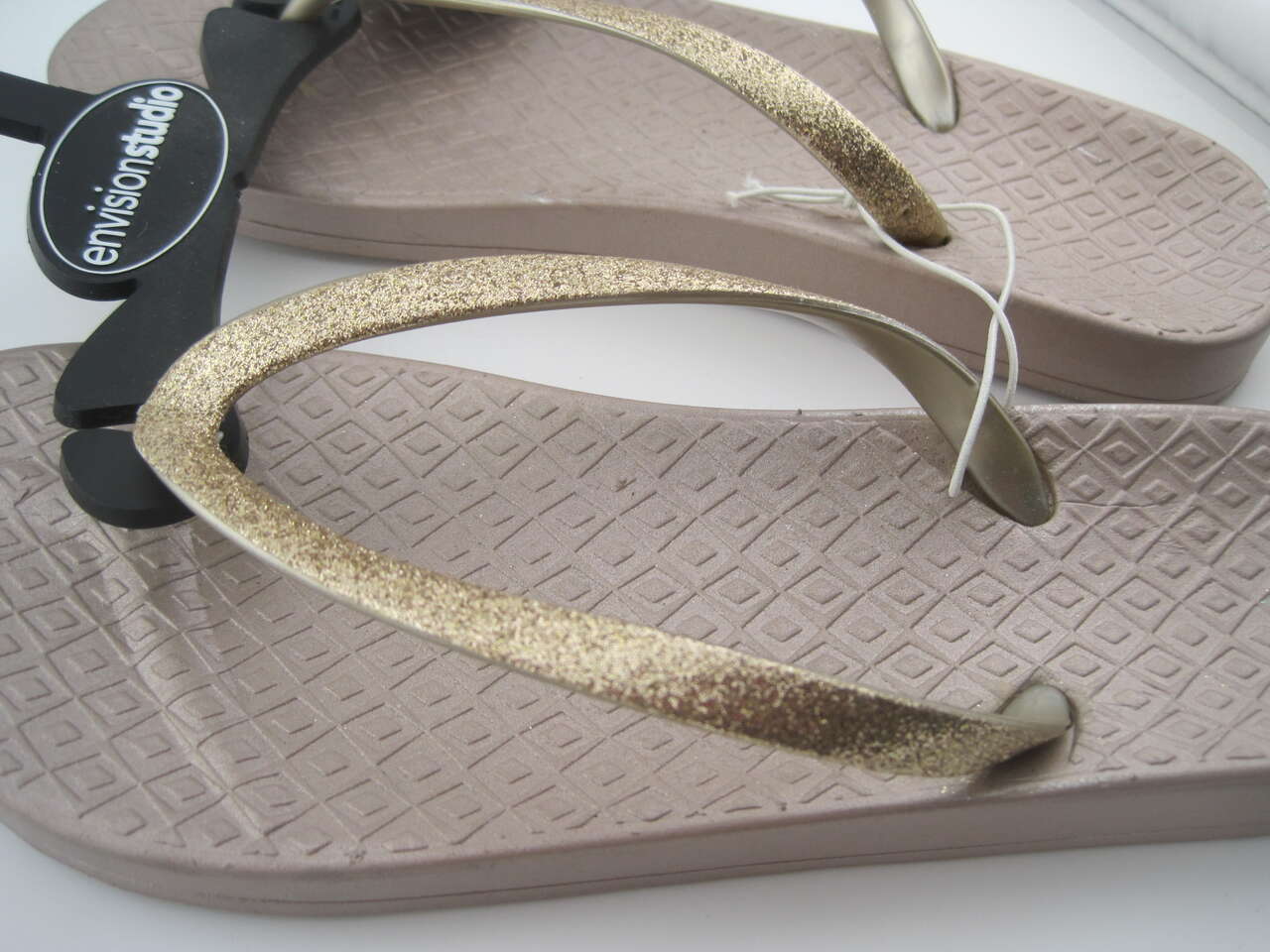 Elevate your summer footwear game with these rose gold glitter strap flip flops from Envision Studio. Designed for a casual occasion, they feature a slip-on closure for easy wear and a flat heel style for maximum comfort. The sandals are made of synthetic upper material and have a rubber outsole, making them lightweight, breathable, and reflective. These sandals are perfect for a summer day out, whether it's a beach party or a casual brunch with friends. The shoe size is either UK shoe size 5, US shoe size 7, or EU shoe size 38, and are available with pink color accents. These flip flops are a great addition to your collection and are sure to become your go-to pair for any summer event.