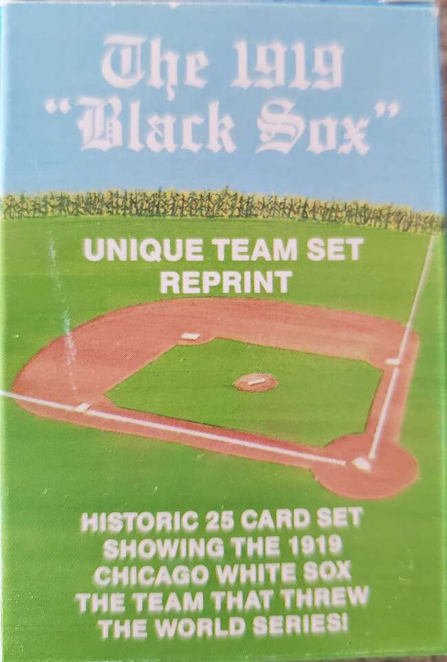 Baseball's Most Infamous Team! Only one 1919 "Black Sox" team set of cards is known to exist, and it is the only set which includes all eight of the banished players. The original "Black Sox" cards of any kind are among the most sought after cards in existance. The 25 card reprint set also features all eight "Black Sox" players, including "Shoeless Joe" Jackson and star pitcher Eddie Cicotte. These cards show the real 1919 Chicago White Sox as they actually appeared, the team that threw the World Series! The unique original set was auctioned off in 1991 at a Sotheby auction for over $40,000. It was the pnly known set in the world of the 1919 "Black Sox" baseball team. The original set was later offered for sale at $250,000.