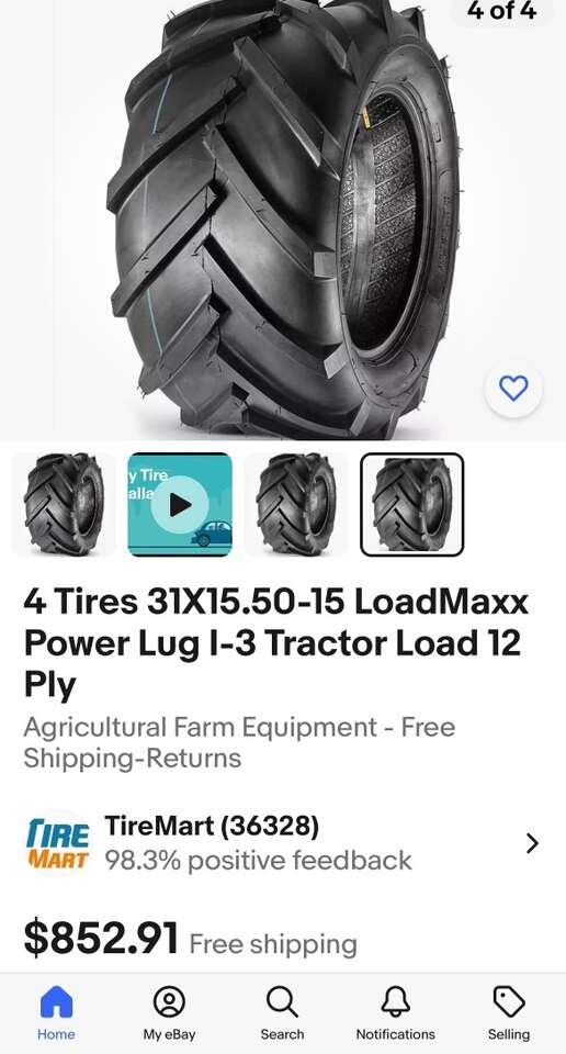 Description- 31X15.5-15, DITCH WITCH/tractor tire. See photos for more product information and specifications.