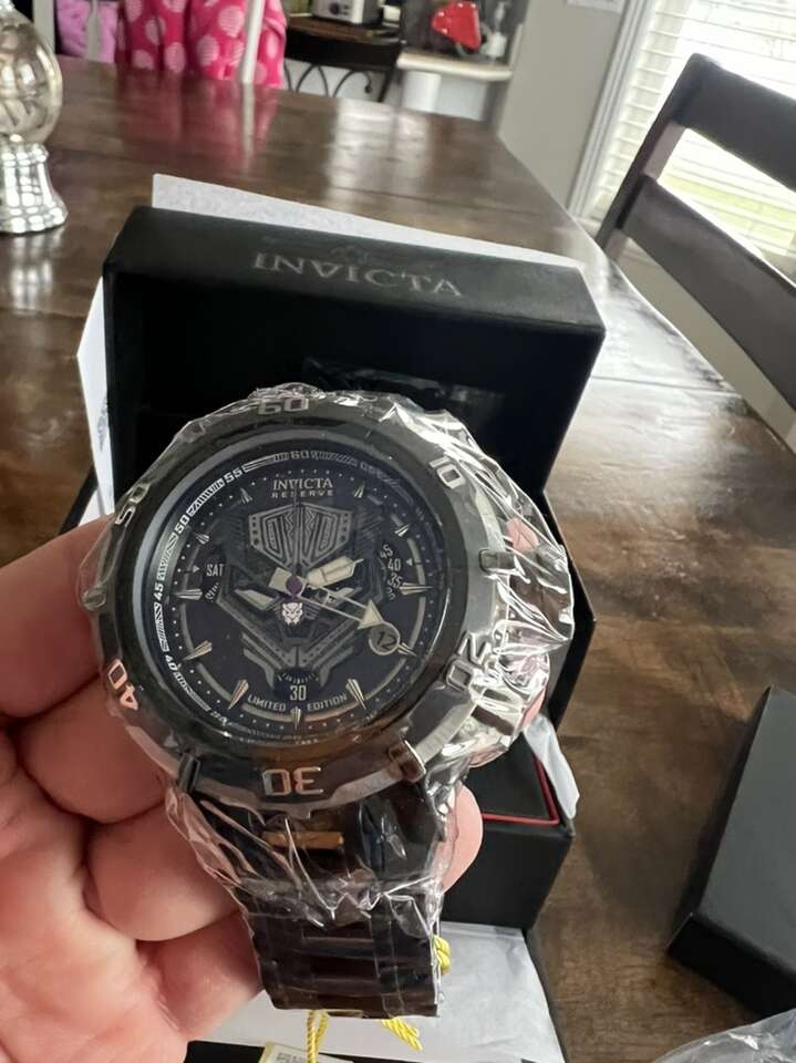 PRICE DROPPED TO $175 FIRM. Limited Edition Invicta Black Panther 54mm Watch. They only made 3000 of this limited print run and this one is individually serial numbered and inscribed with 0447/3000. These are sold out on Invicta website with an original retail price of $799.