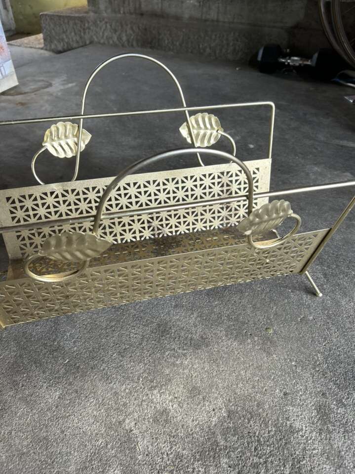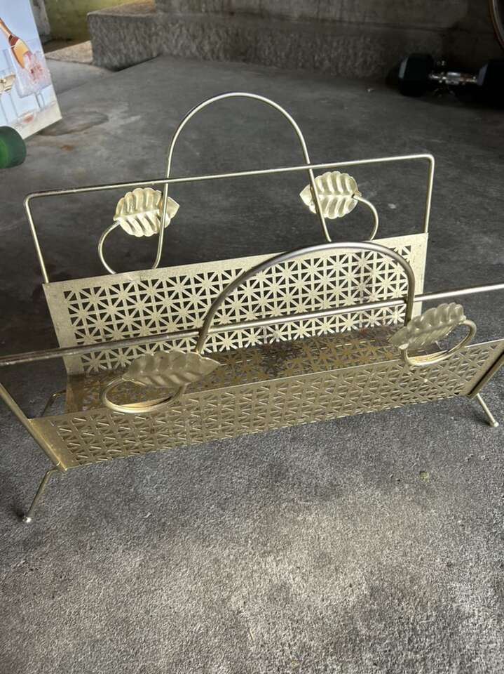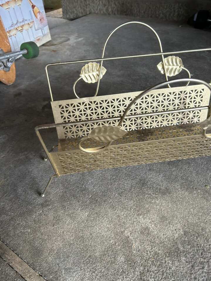 VenmoVintage Mid Century Gold Leaf metal magazine rack holder basket