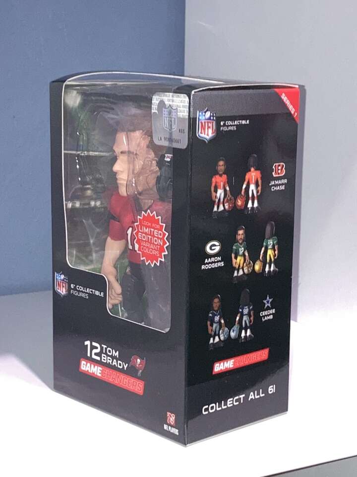 ApplePayTom Brady Tampa Bay Buccaneers Game Changers collectible figure with removable helmet brand new in the box and box is in great condition.