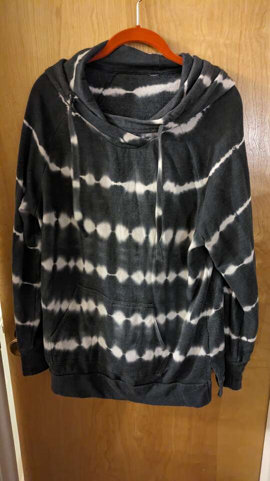 Black and white hoodie with pocket in front. Size is Medium. In good condition. Text if interested. Asking for $1.00