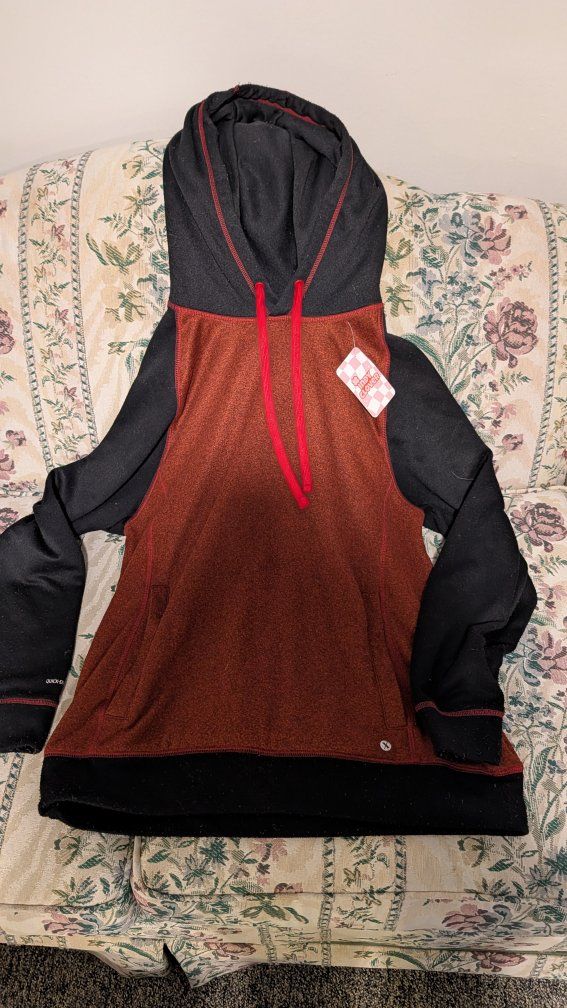Cool Attit Ube gray sweater and a maroon sweater with a hoodie by Maurices. Xersion hoodie with pocket in the front. maroon Size is Large. In good condition. Text if interested Asking for $1.00 each
