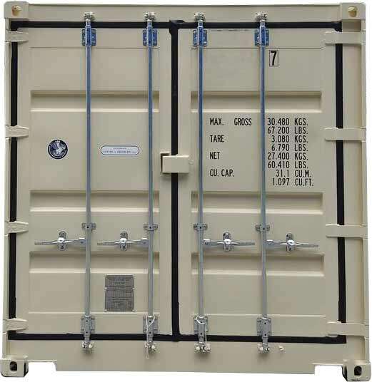 This container is equipped with a lockbox on the doors that can't be pried, cut or grinded off. It also has the conventional clasp lock holes in each lever handle for conventional padlock use. We recommend ABUS 92/65 KA Monoblock Padlocks used in conjunction with the lock box.