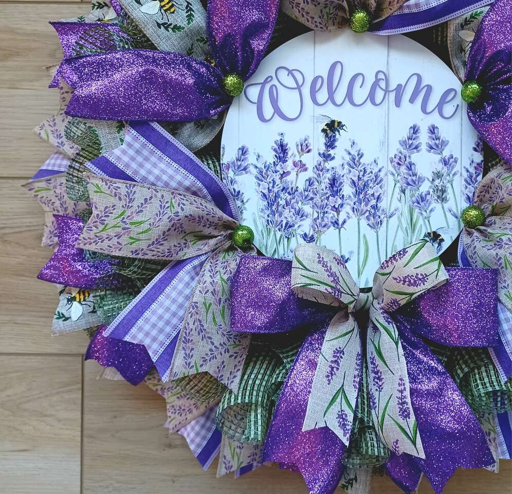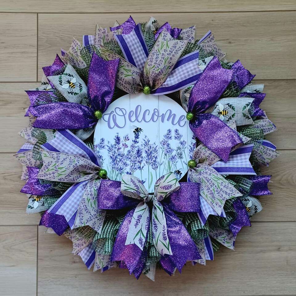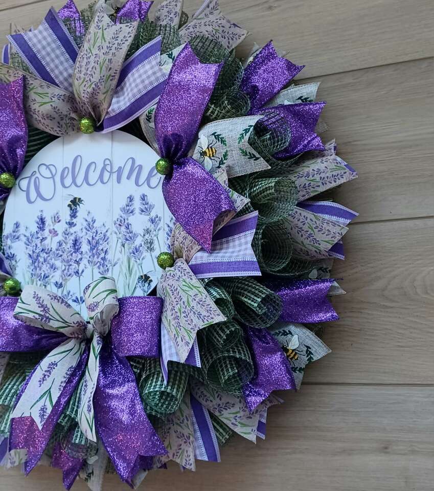 Show your home welcoming this year with this beautiful new handmade 24" Spring Lavender Wreath with lots of ribbon and a super cute Welcome sign ready for display from a smoke free home. I can customize and ship. Just ask!!!