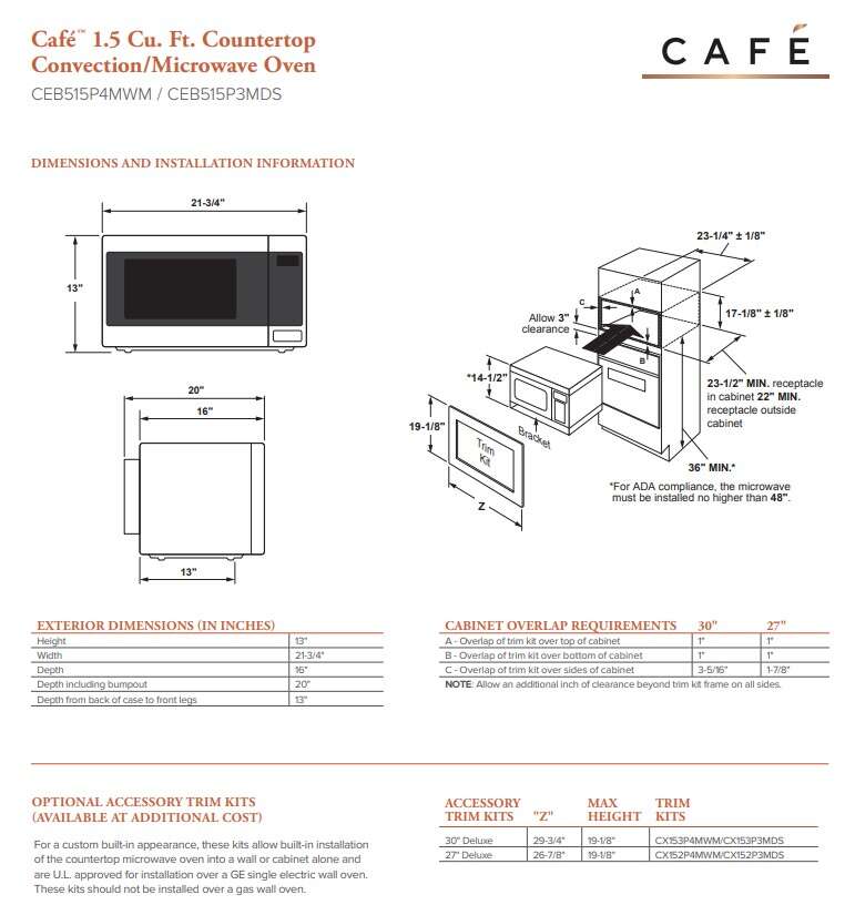 Trim Kit is meant for use with Cafe Brand microwave ovens. It may also fit other ovens, please see pdf link below for exact measurements.