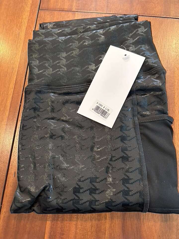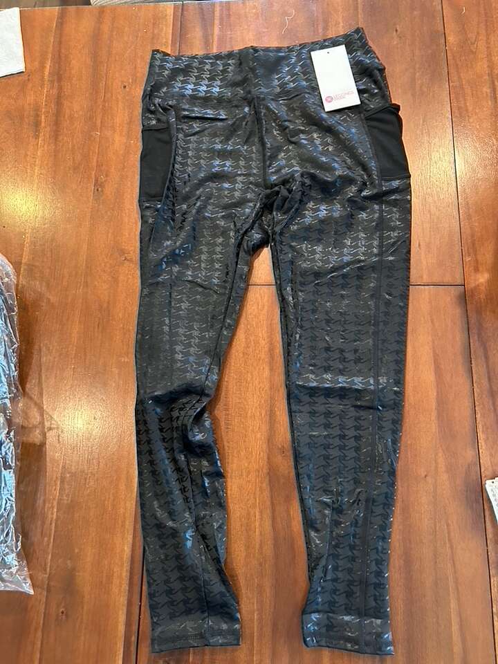 High Waist Houndstooth Shiny Black or Navy Leggings with Double Pockets