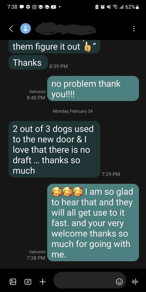 Venmowhat I provide is an excellent solution and fix for thoes lowes or homedepot dog door inserts that don't seal well or allow full access to using your sliding door. this will alow your dog to go in and out as they need to without a worry on your end. I have done some really custom and interesting configurations that alot of company's wont do. doors run from $800 up to $2500 depending on what you need. I have installed over 100 doors. dog doors are extremely quality and installed professionally. for more questions call or text Tyson @ (801 458 5932)