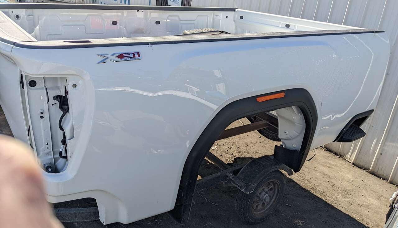 New 2020-2025 sierra 8' truck bed available for sale. Bed removed at dealership for service body .Price is $950 for bed less gate and lights .$750 for tailgate less camera . Rear chrome sensor bumpers $500(with out sensors), chrome non sensor bumpers $400. Hitches for $75. Have summit white factory 5th bed for $1800 with out the tailgate and lights. Delivery available to some areas. Call with any questions, 801-652-9861