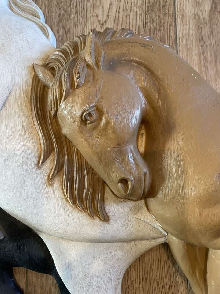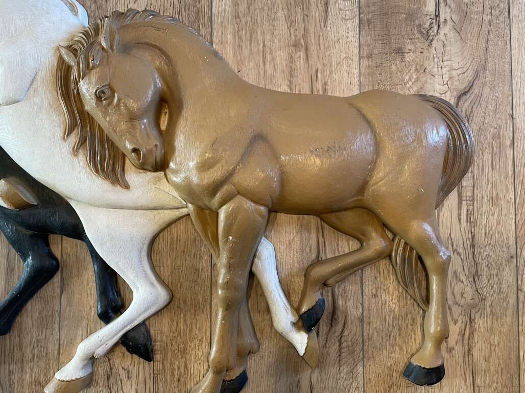 Incredible vintage Burwood wall art, 3 horses with incredible detail and colors . 35” long 24” tall. Vintage piece from 1973