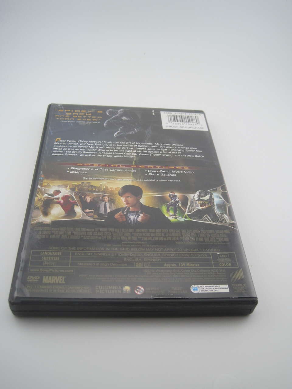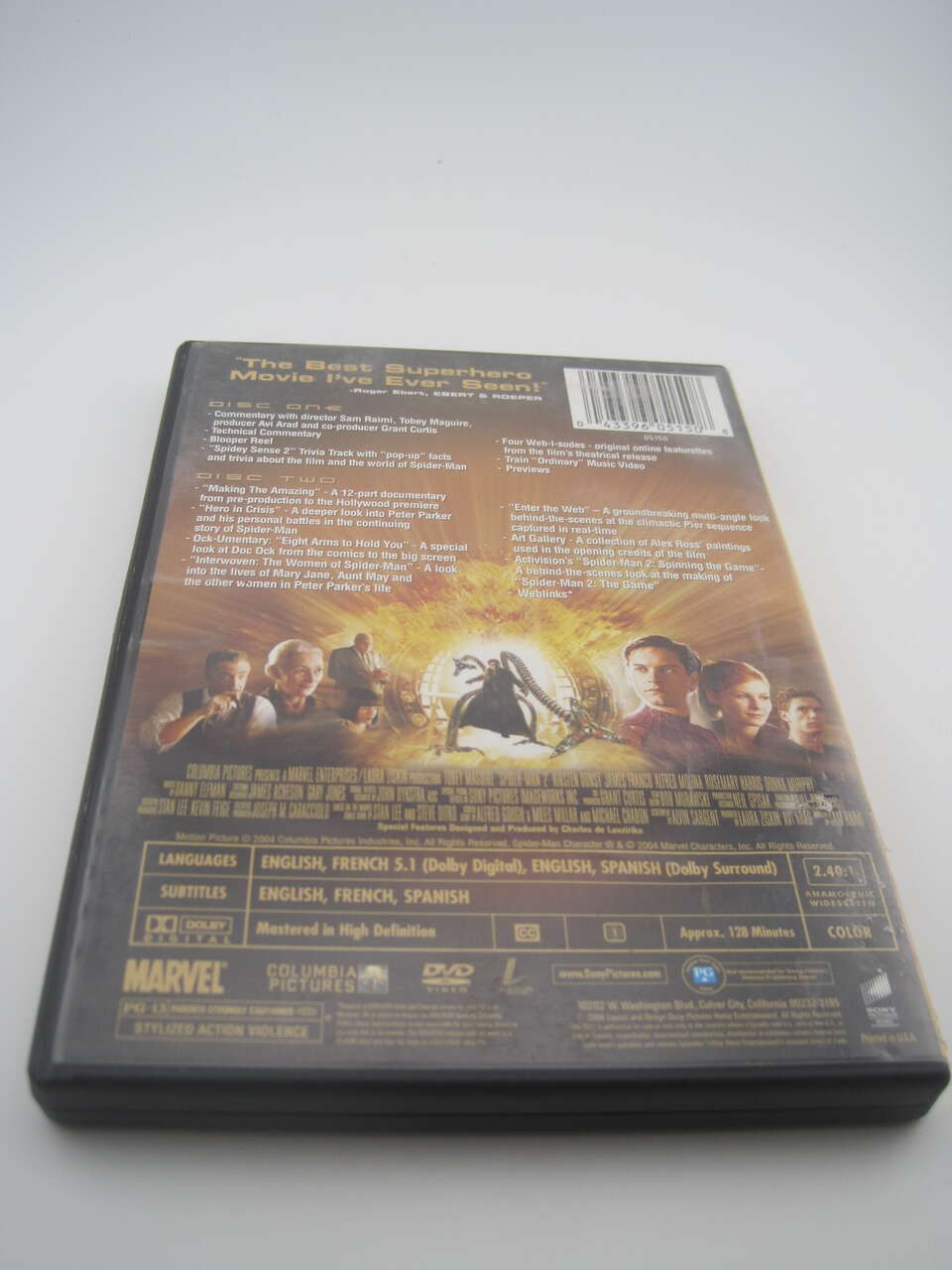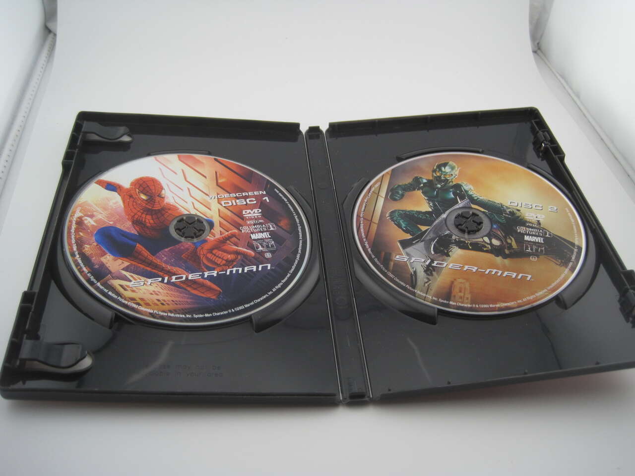 DVDs plays fine with No skips but may contain some minor scratches. Spider Man 1 and 2 cases have some price sticker markers on front and back cover.
