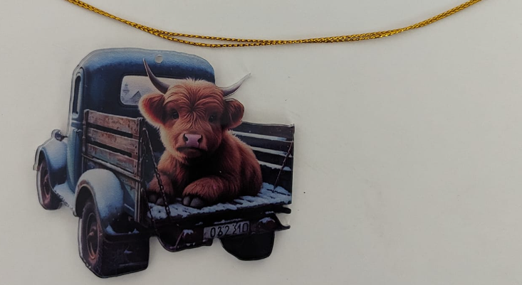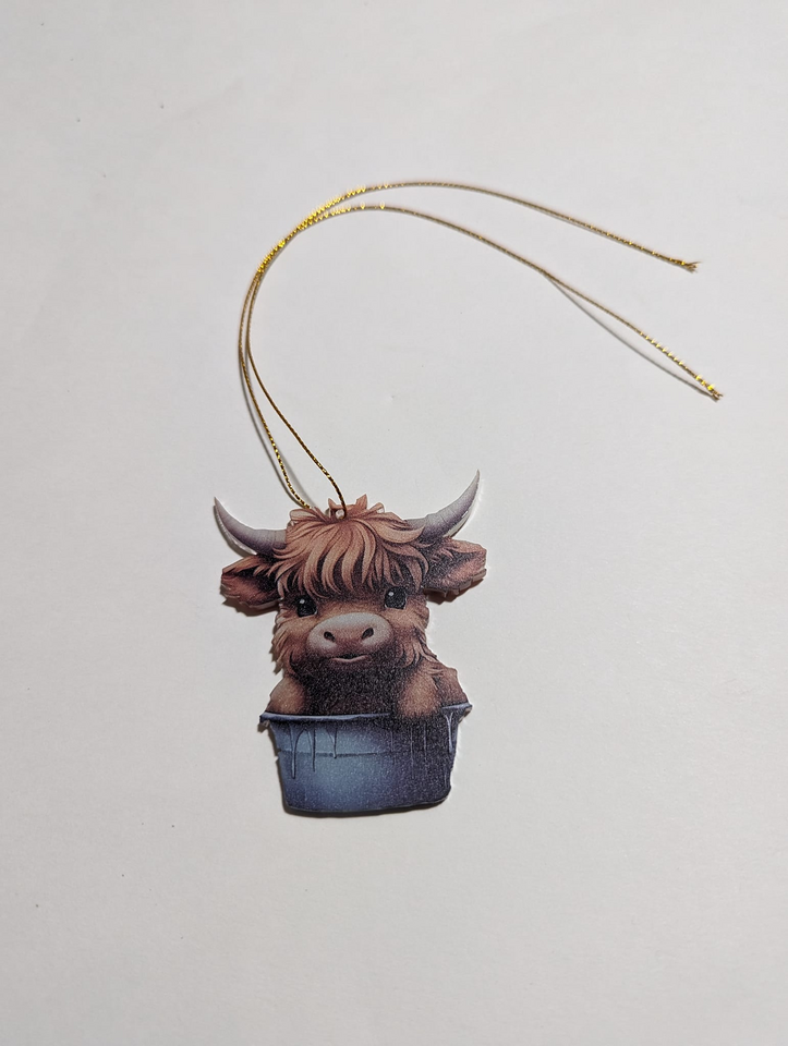 Super Cute!! Highland Cow Decoration $5 EA. Brand New Hang it on your rear view mirror in your car, truck or wherever else you'd like to hang it. (Approx. size: 3.5 x 2.5 in)