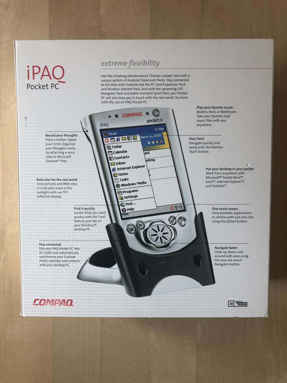 PayPalThe first iPAQ Pocket PC was the H3600 series, released in 2000. It runs Microsoft's Pocket PC 2000 operating system, and features a 240 x 320 pixel 4096-color LCD, 32 MB of RAM, and 16 MB of ROM.