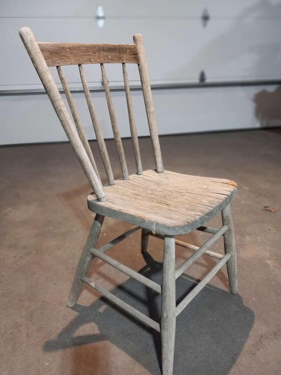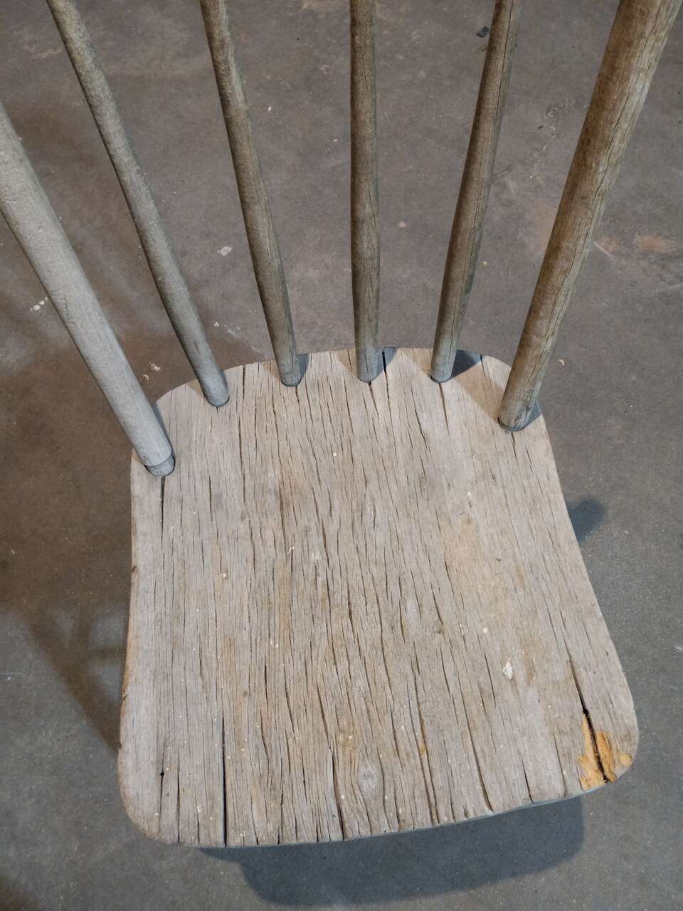 A very unique antique, weather worn, rustic chair. It is still very solid.