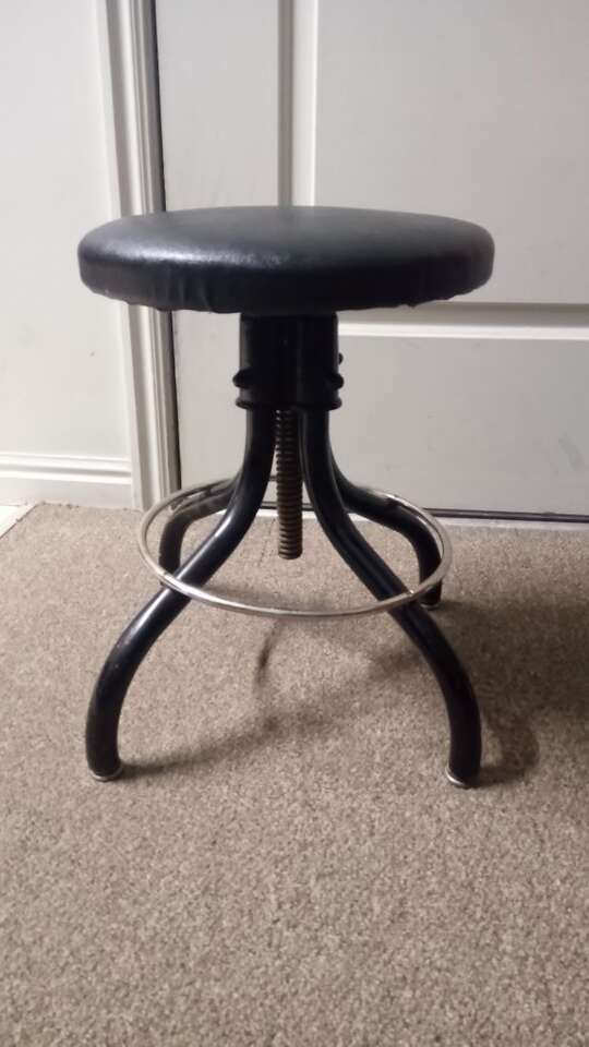 Really cool and in excellent condition is this vintage 1930s USA made Hamilton industrial stool and extends from 17" to 28" tall and is in perfect working order and weighs around 30 lbs and at this price that's a steal.