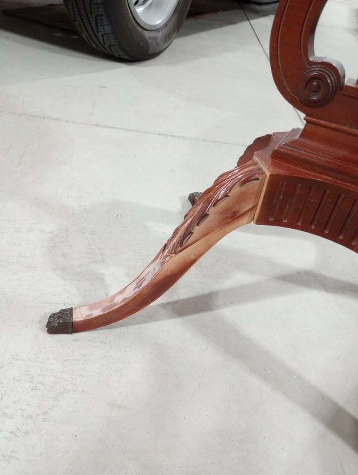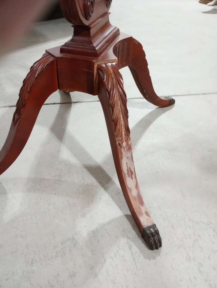 Vintage Duncan Phyfe. 1940's Mersman Lyre (harp) oval mahogany finish table. #6651. With brass foot caps. The table had an accident. The repairs have been made. It needs a finish. The table is very sturdy. Located in Plain City.