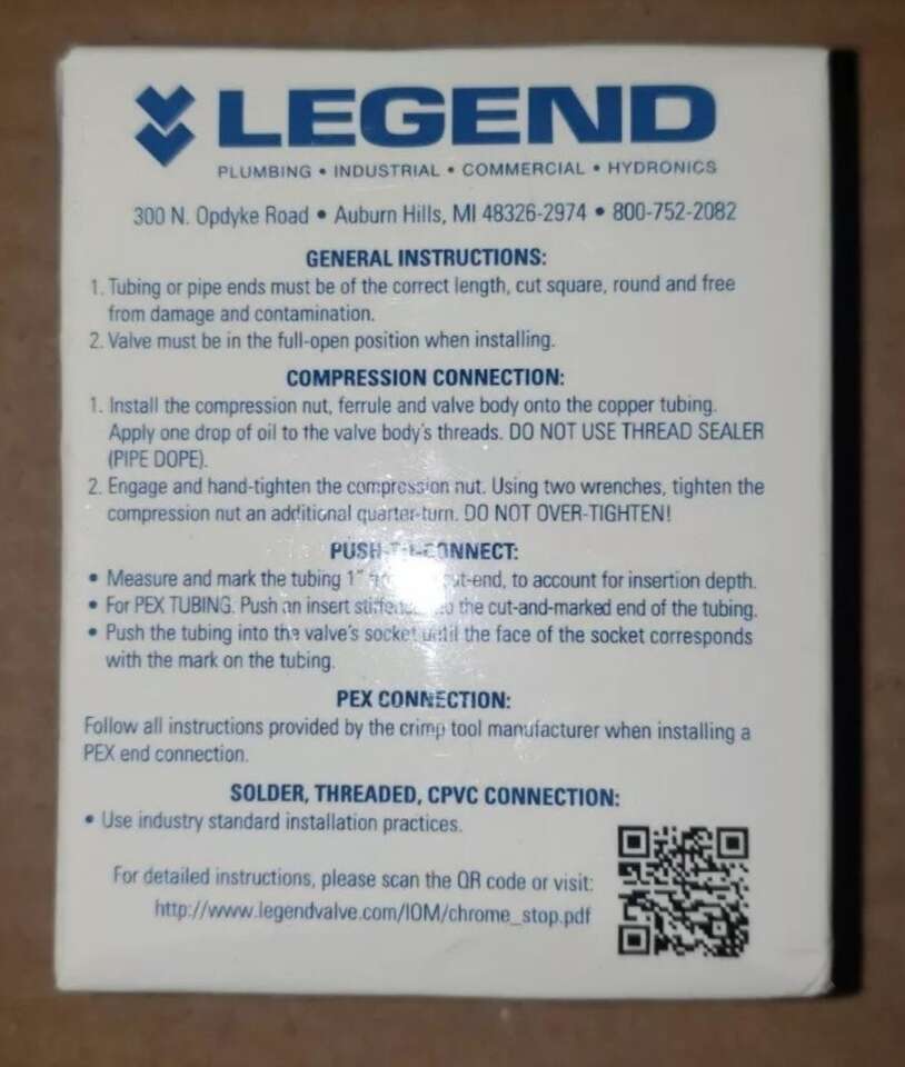 Introducing the LEGEND VALVE & FITTING INC 1/2 PEX X 3/8" OD No Lead Chrome Brass Stop Valve, designed for use in plumbing and fixtures. This valve has a straight shape and a sleek silver color that complements any modern home decor. Made to work with PEX and compression fitting, it is built to last and withstand wear and tear. The valve has a 1/4 turn mechanism that ensures easy operation and reliable functionality.