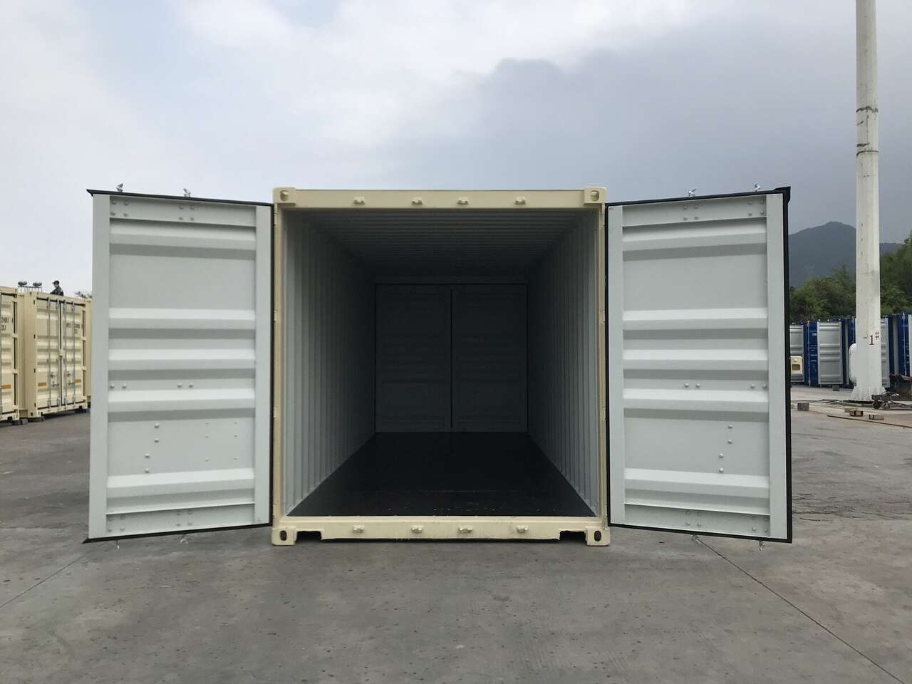 We also stock 20' standard, 20' high cube, 20' standard with double doors, 20' high cube with double doors, 40' standard, 40' high cube, 40' open side and 40' HC with 5 sets of double doors with columns separating each set of doors.