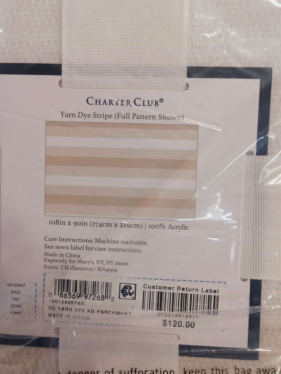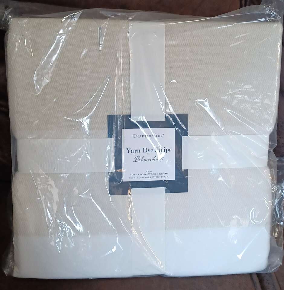 VenmoCharter Club Yarn Style Stripe Blanket, Tan & White, King or Queen available, multiple quantities, Brand new, Lightweight blankets, 100% Acrylic