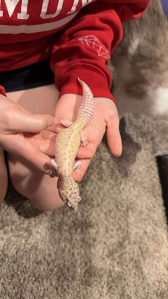 Female Raptor leopard gecko. Approximately 6 years old. Proven and RTB and has laid about 6 eggs. Great at being handled and likes her pets. Mostly comes out when the lights aren't bright. Good hunter but does better with just a little light rather than bright light. Not a picky eater, eats and hunts great. Currently housed with a bigger female with no issues. Asking $200