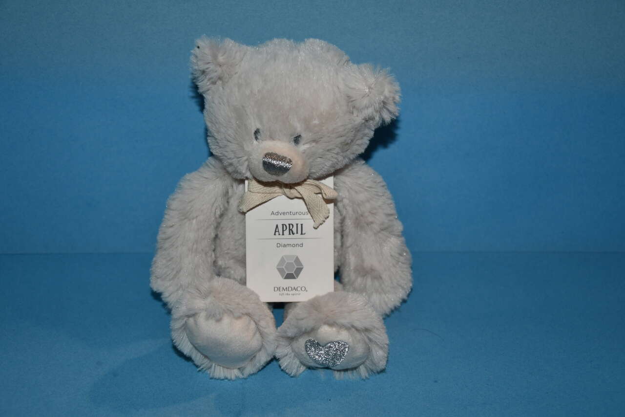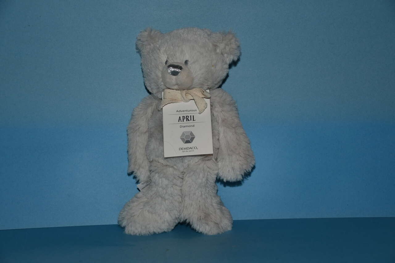This CUTE STUFFED "APRIL" DEMDACO TEDDY BEAR is about 9" in height. It is CLEAN! Questions??? Please ask. We are locatdin Plain City. Cash only please.