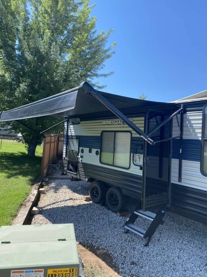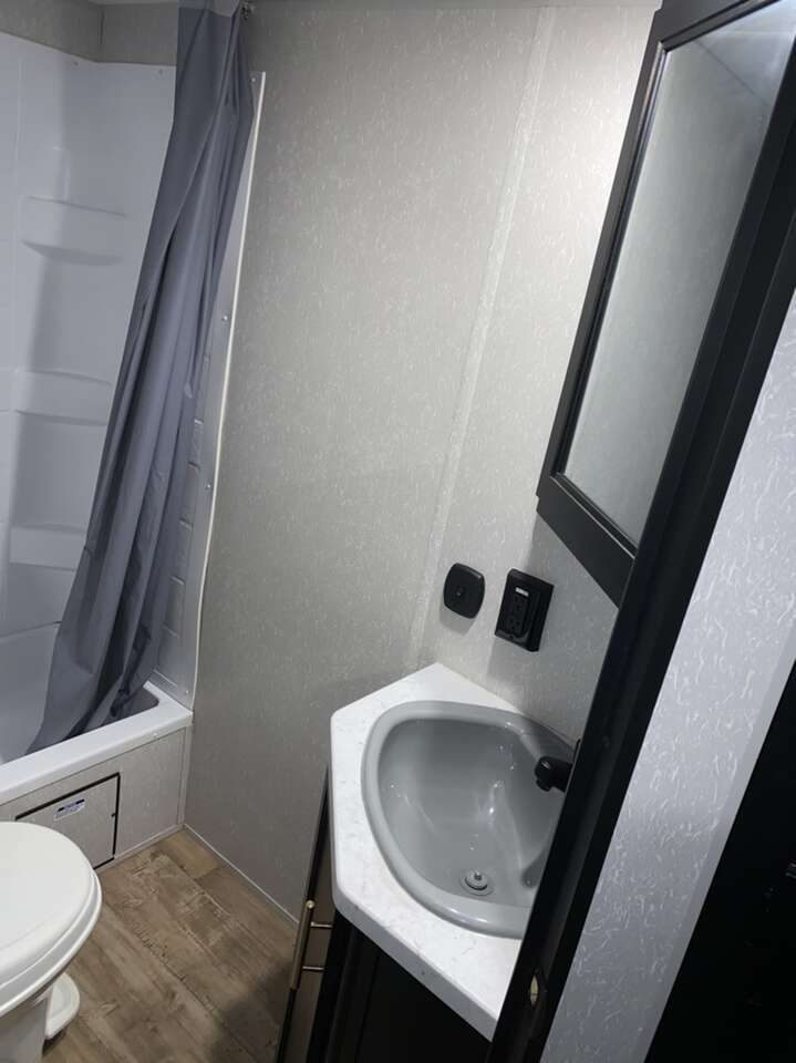 Dry weight 4580 lbs Fresh water 40 gallons Gray water 38 gallons Black water 28 gallons 50 amps solar panel Electric tongue jack Backup camera and monitor
