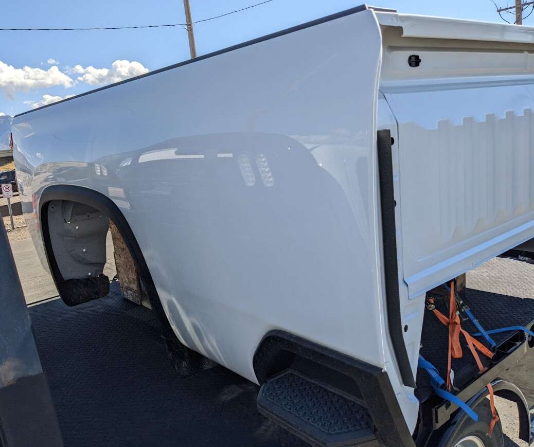 Bed removed from new truck . Will fit 2020-2025 2500/3500. Factory rhino lined. $900 less gate and lights. $750 for gate less camera.$400 for chrome bumper. Non LED tail lights $100 eacn. Any questions call or text 801-652-9861.