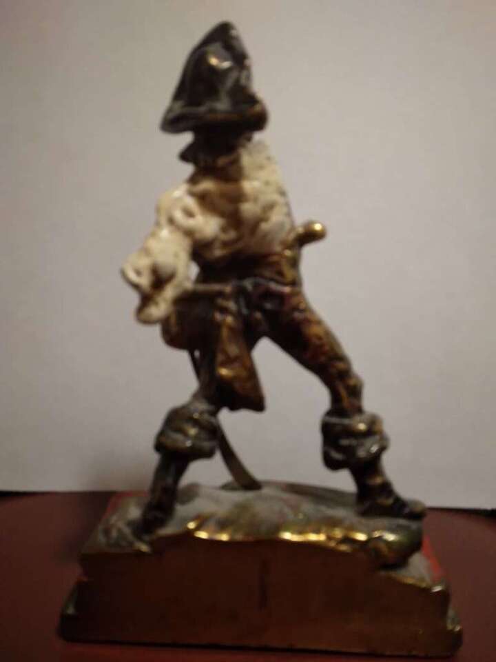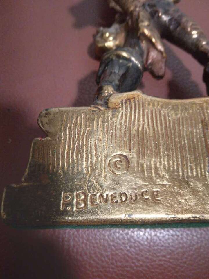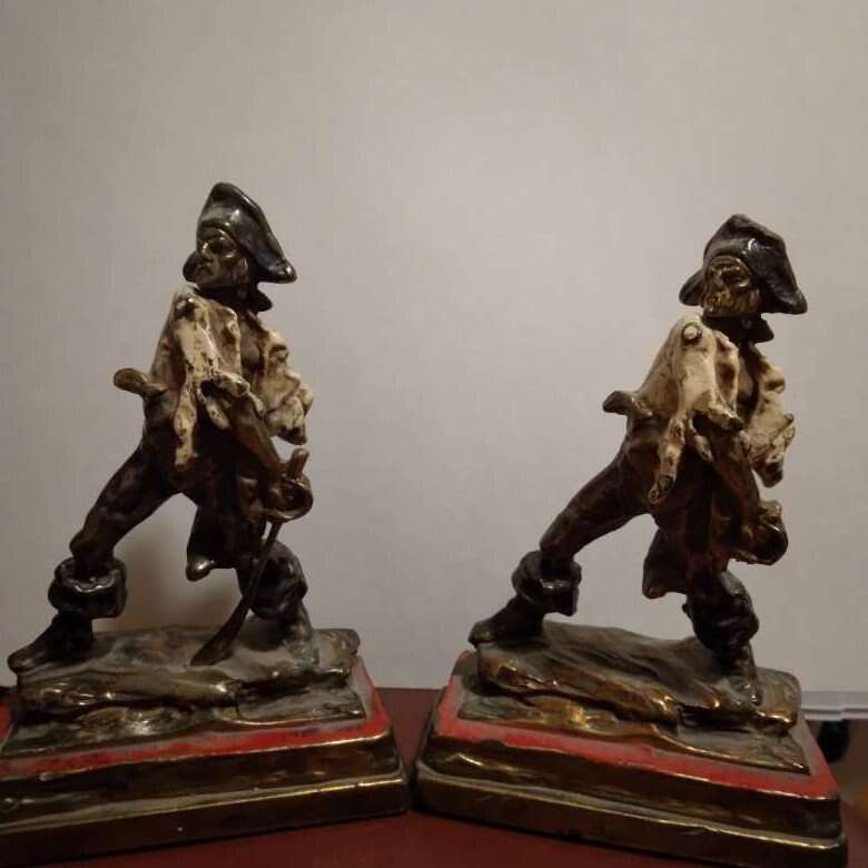 P. Beneduce Signed Pair Antique Bronze Pirate Enamel Metal Statue Bookends