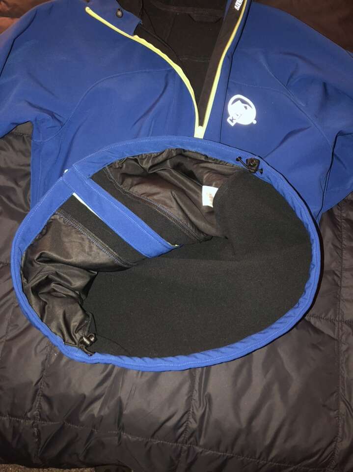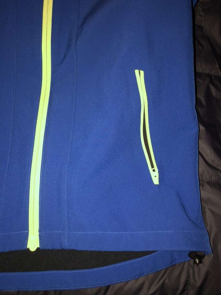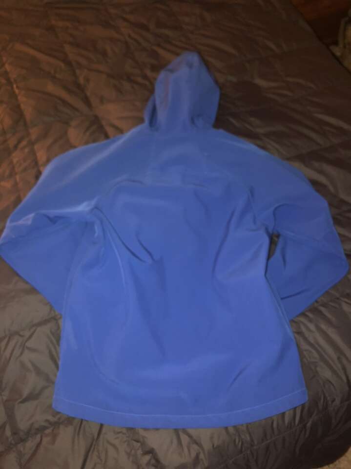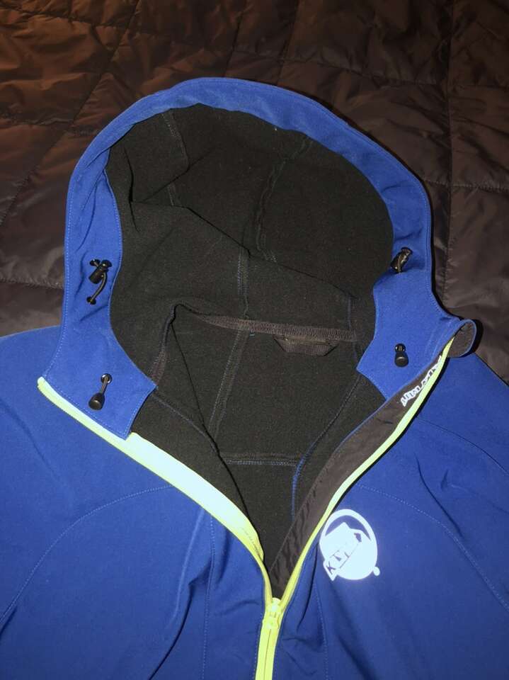 Full zip hooded Softshell jacket in great condition. Wrist cuffs are slightly dirty, but there are no tears or stains, and all zippers and cinches function properly