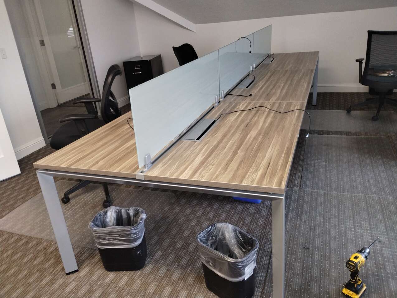 Pre-0wned Friant Benching/Desk Units- office Workstations. Each section is 4' wide. The table depth is 2' deep. a section of 4 would measure 96x48 We have several of these units available. They come in sets of 4 and sets of 6. Light wood Grain Laminate Power trough Glass dividers. $425 Per seat. Click See more ads by seller to see our other cubcile and desk options. Stop by our showroom Foxbuilt Office Furniture 420 W. industrial Drive Building LL Pleasant Grove, Ut 84062 Monday -Friday 10-5 801-899-9406