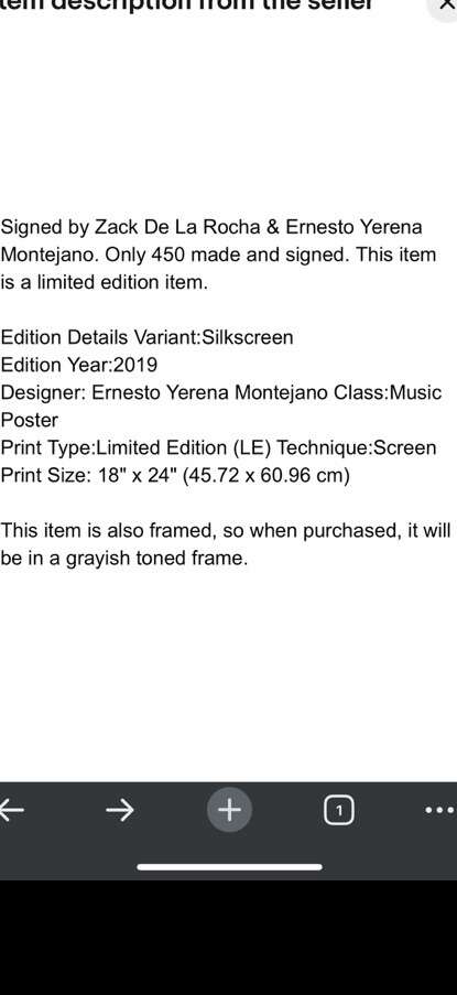 This is a one of a kind autograph by Zach De la Rocha lead singer from rage against the machine who very rarely signs If you’re a lover of the band this is a must have for your collection only 450 made and signed so it’s very rare!! Asking $450..OBO will make an incredible gift