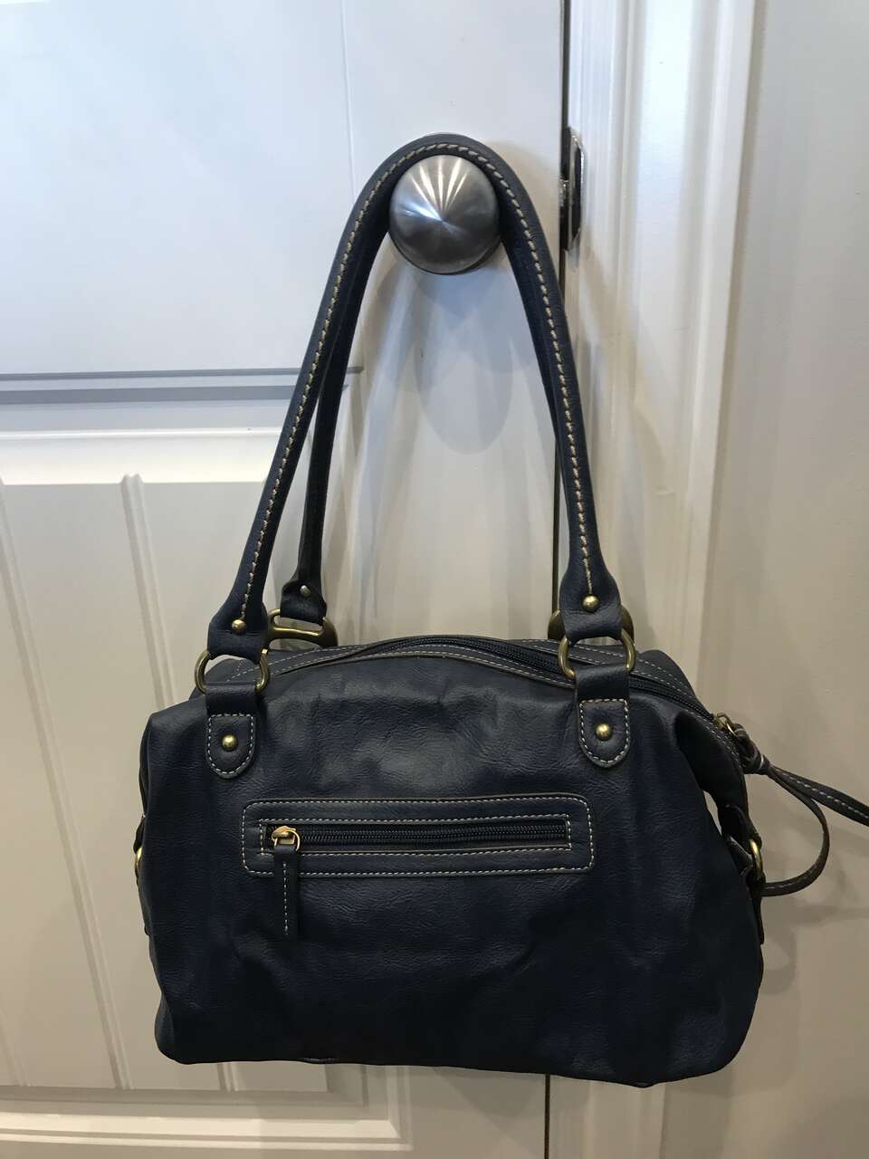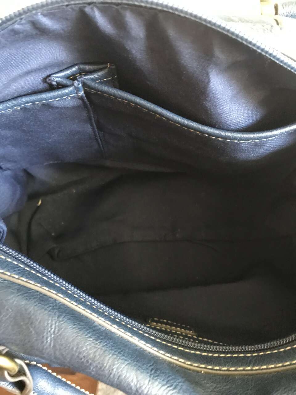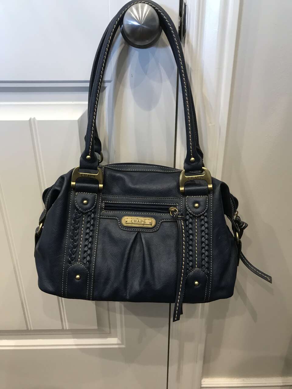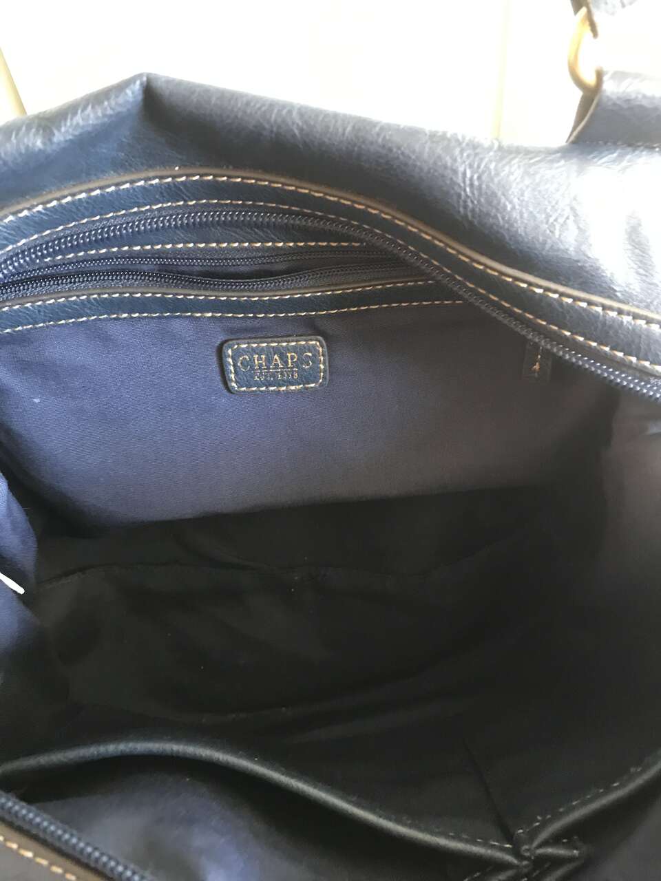 Women's Blue and Gold leather purse - BRAND (CHAPS). The size is 13 x 9. I am selling this purse for $10.00. This purse is in excellent condition. Please look at my other ads.